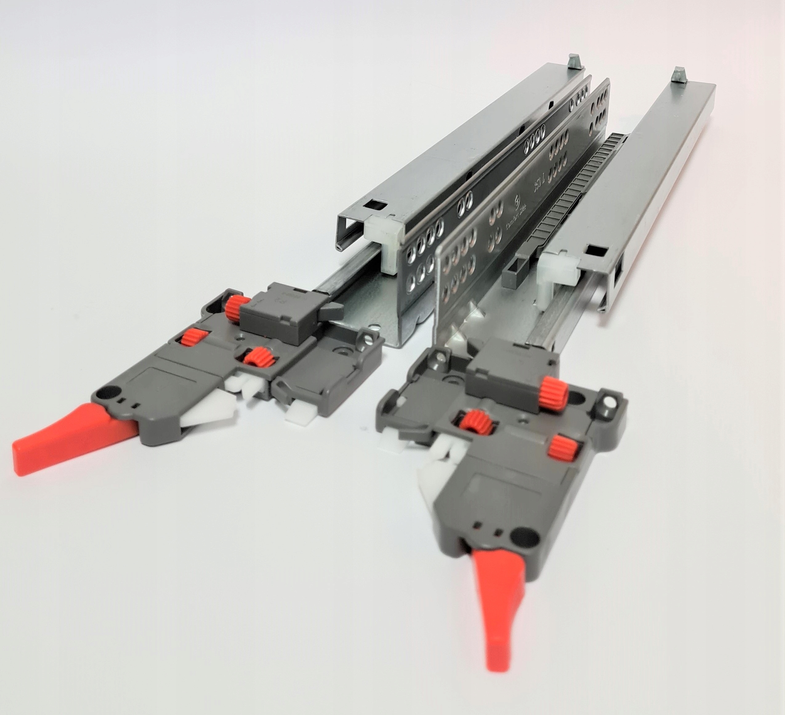 Механизм монтируется в нижней части ящика (под дном ящика), что делает его незаметным, что придает ящику исключительно эстетичный вид, а муфты позволяют быстро и легко снять ящик без использование инструментов.