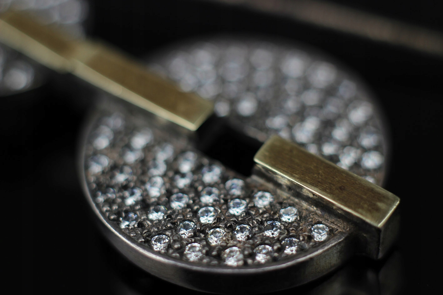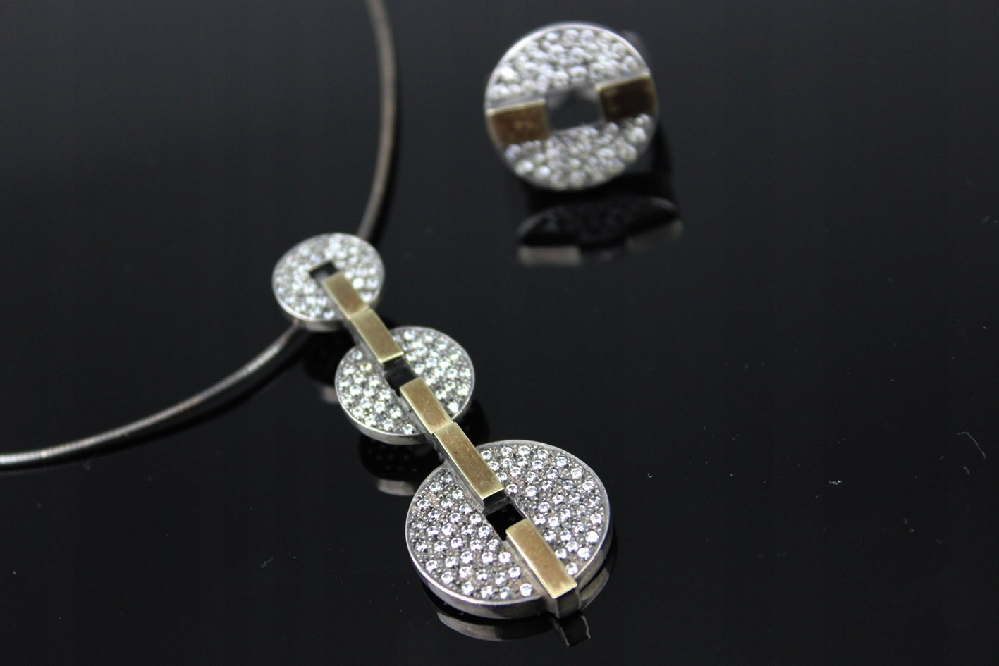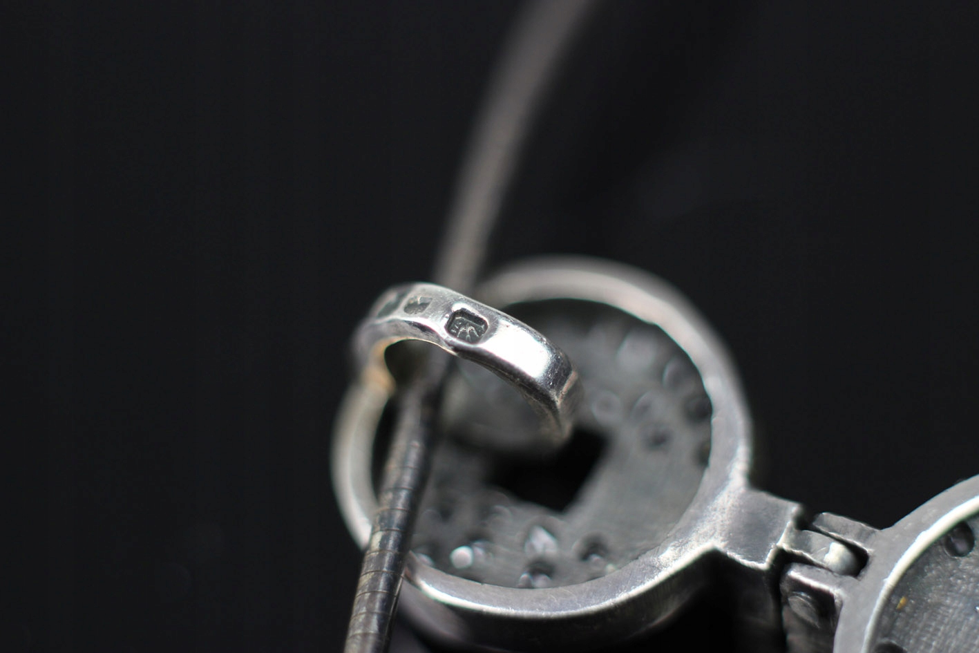 Характерная модульная форма и четкое разделение плоскостей характерны для дизайна 1980-х годов. Португальское изделие с явно дизайнерским ювелирным характером.