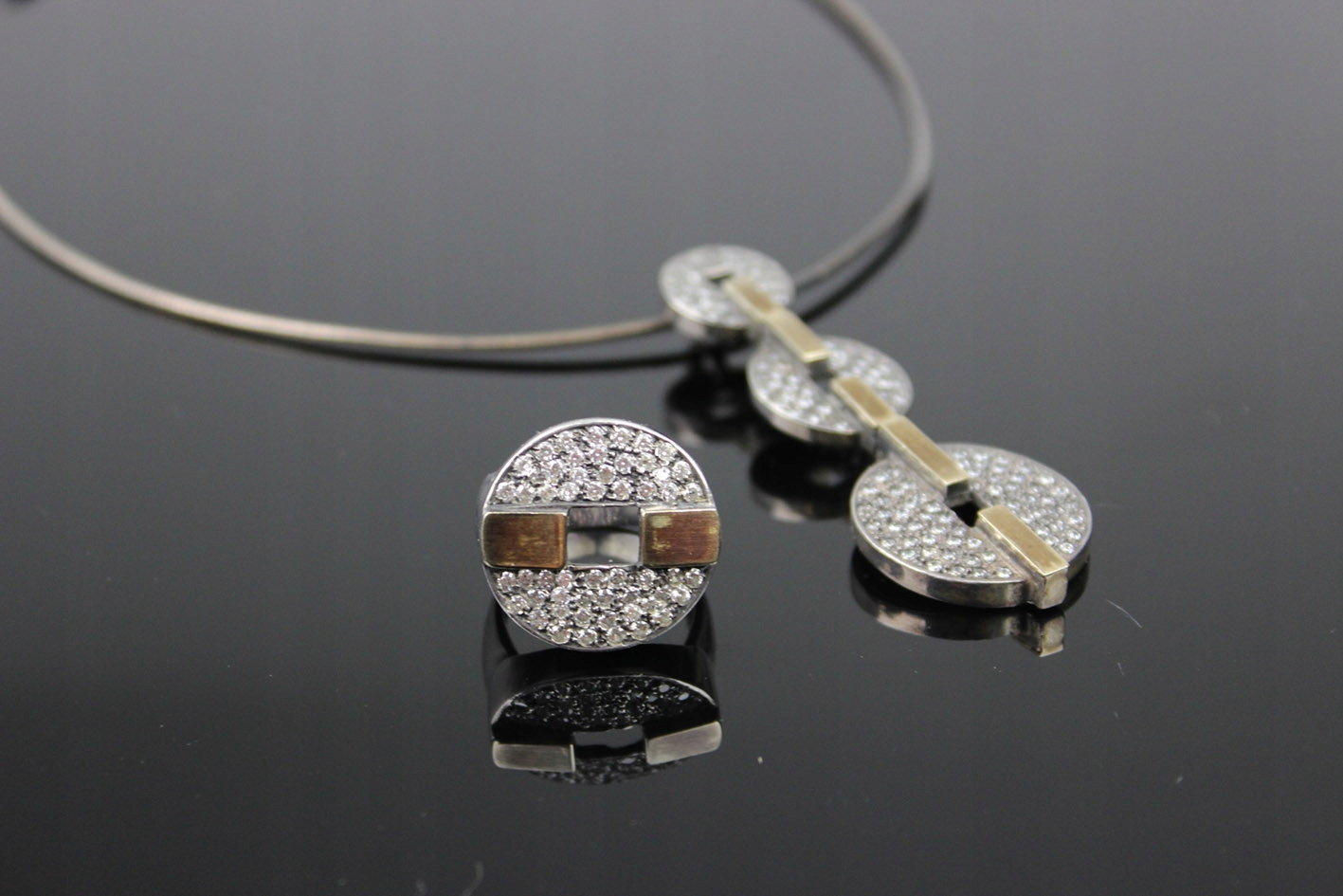 Отдельный аукцион представляет кулон, который идеально сочетается с рассматриваемым кольцом, позволяя составить целостный комплект.