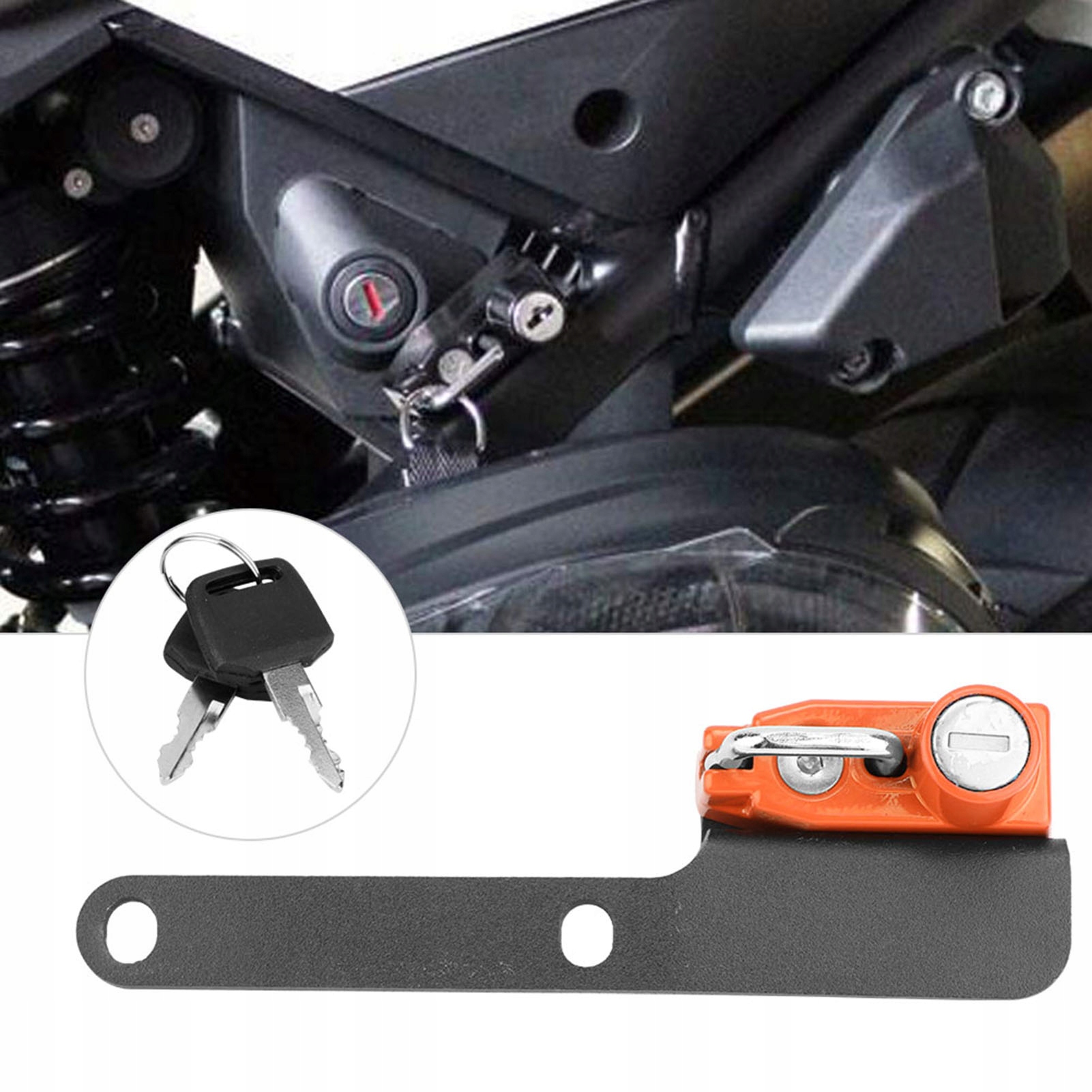 4. Этот замок на мотоциклете является небольшим инструментом для безопасной подвески и насадки на шлем.