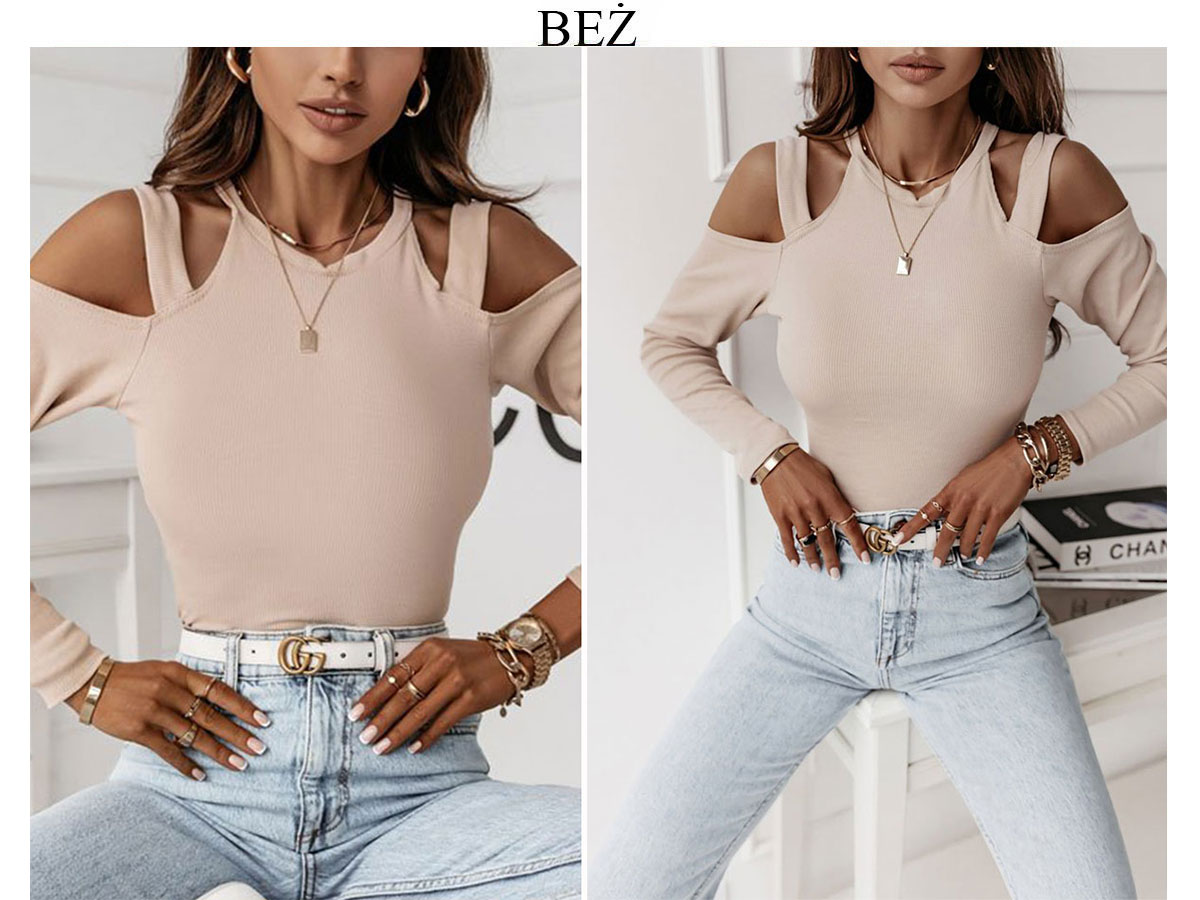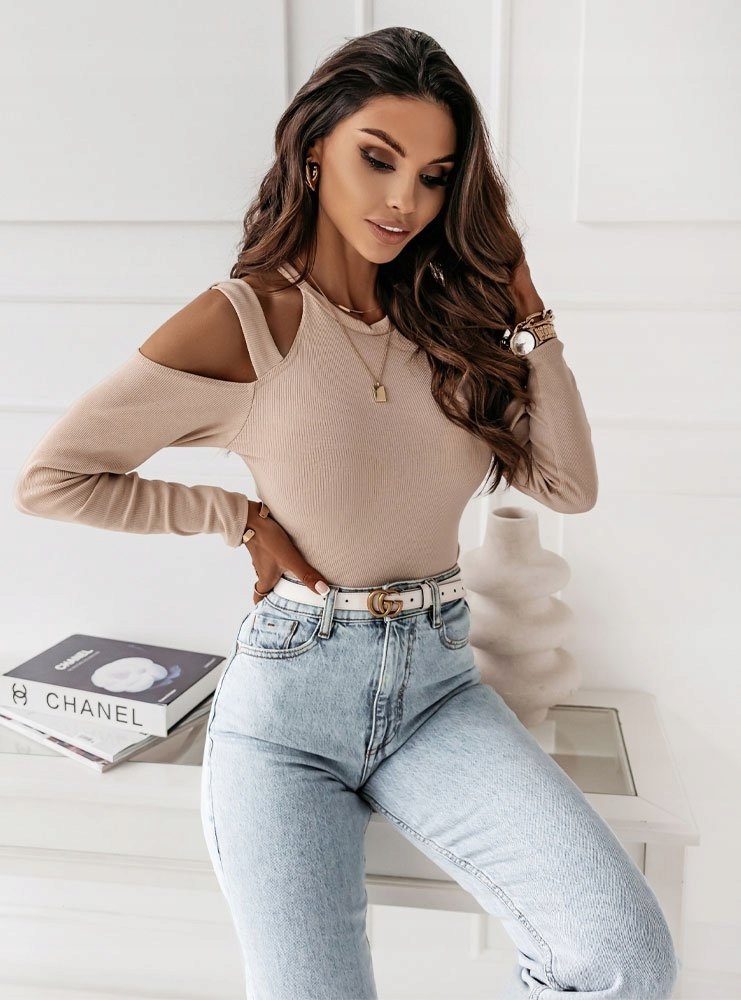 МОДНА БЛУЗКА В РУБРИЧКУ З ВИТРИЗАМИ НА ПЛЕЧІХ БЕЖЕВА L/XL BYSISI