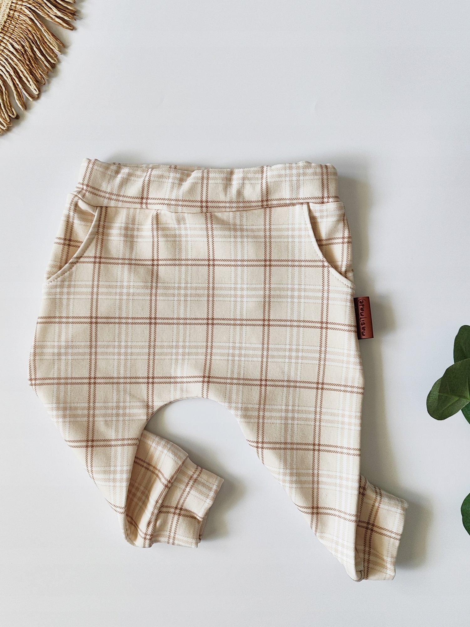 Модные элегантные хлопковые мальчики брюки ручной работы бежевой решетки 80