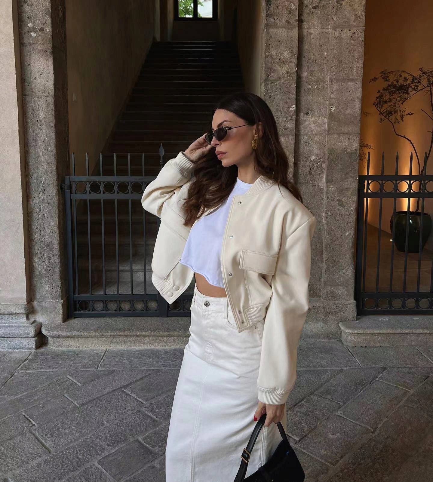 Модная куртка с большими карманами короткий бомбардировщик
