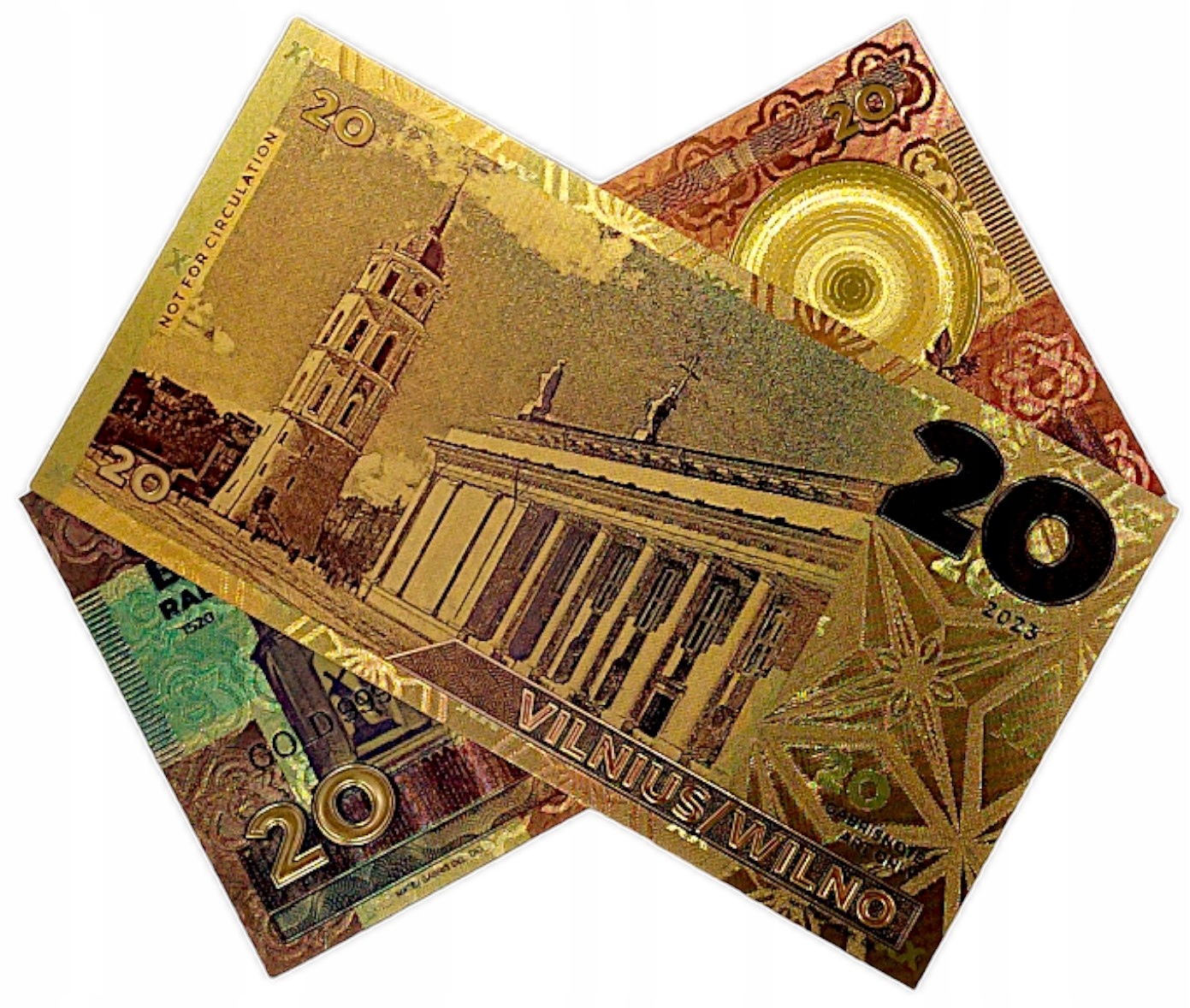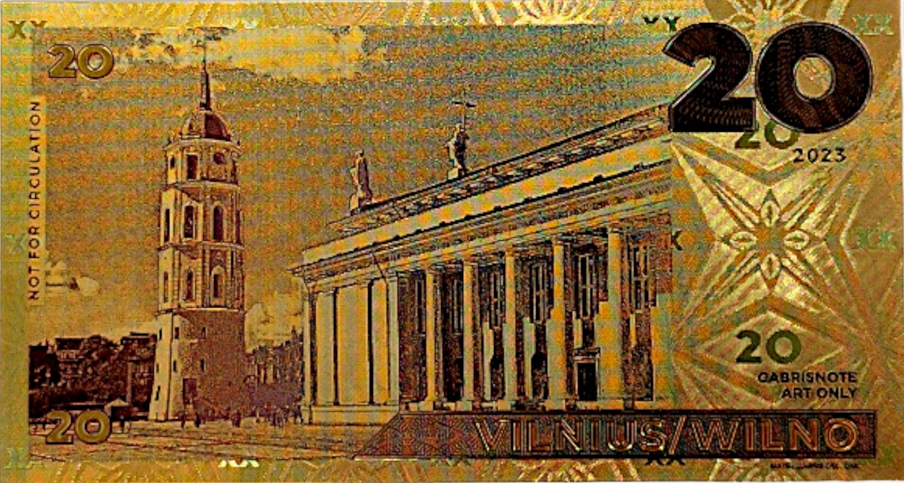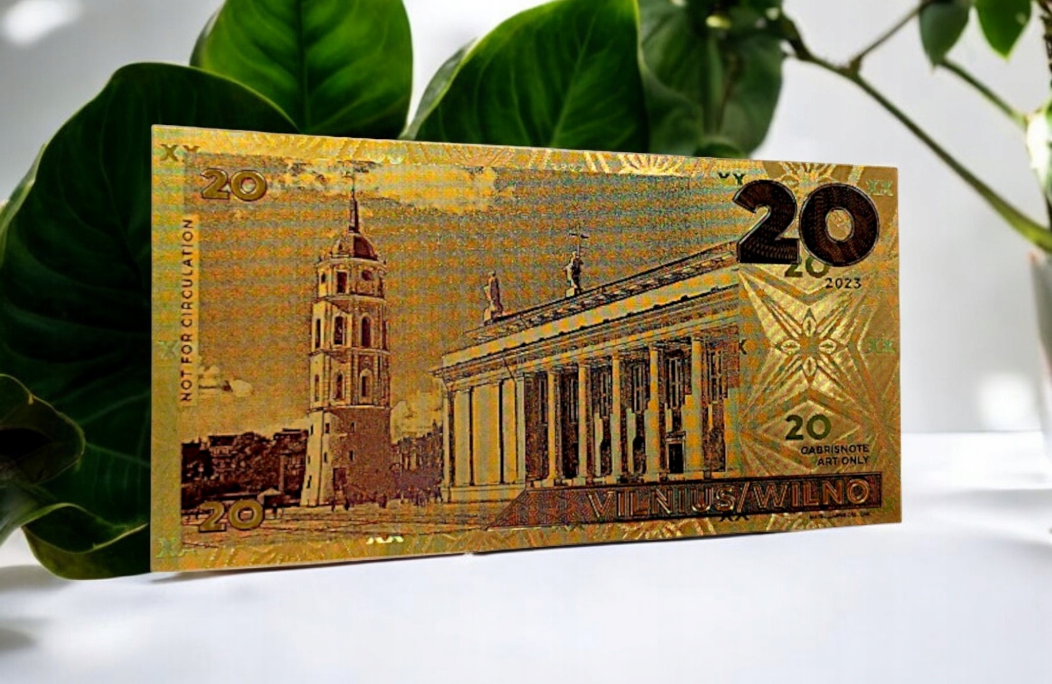 Точная копия коллекционной банкноты из ПВХ, покрытая золотой фольгой.