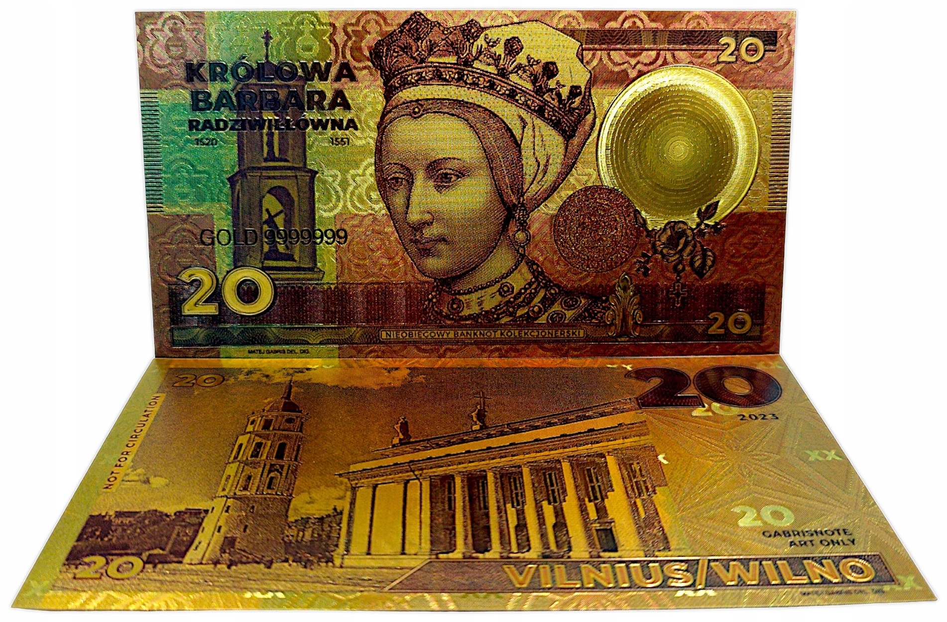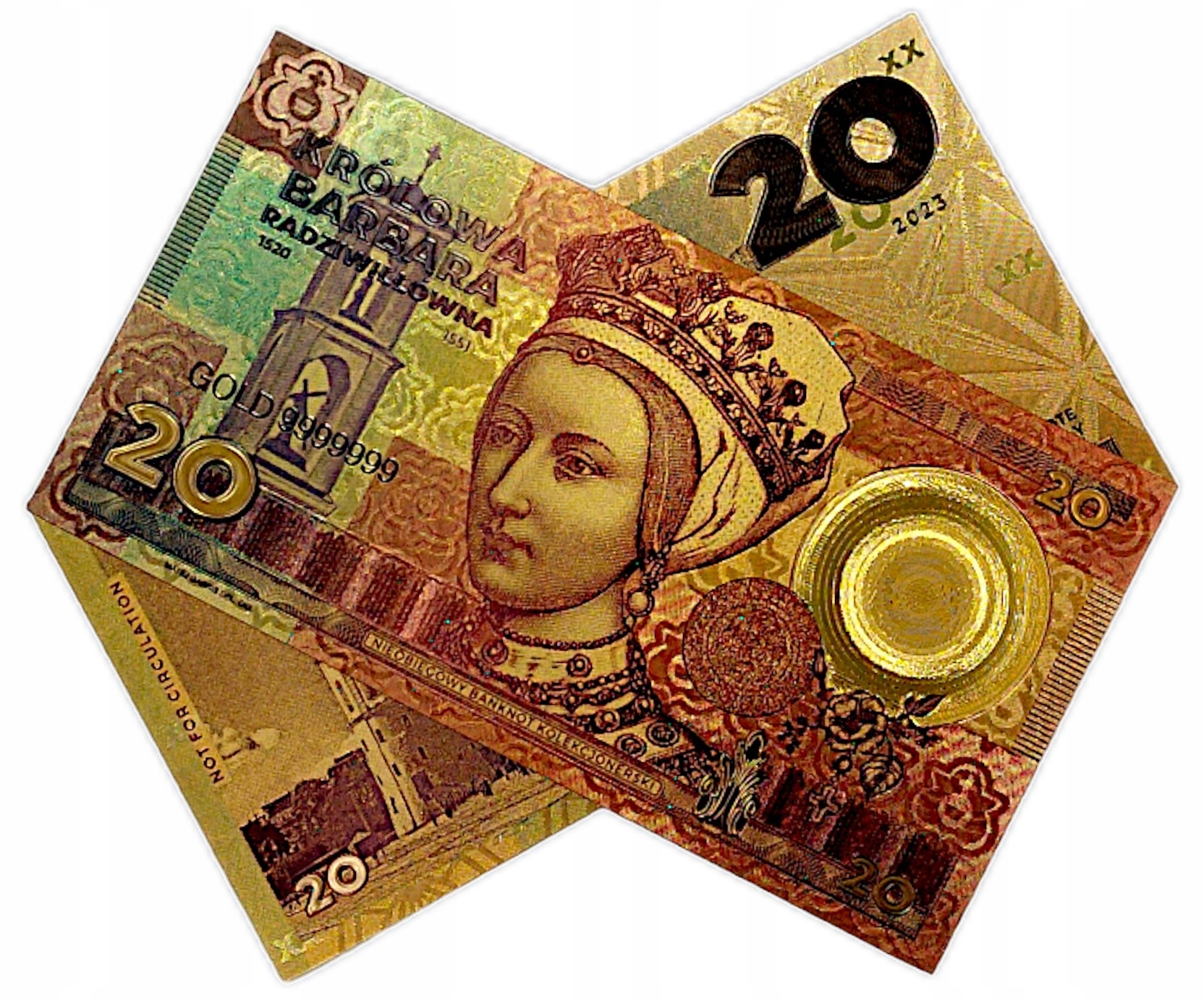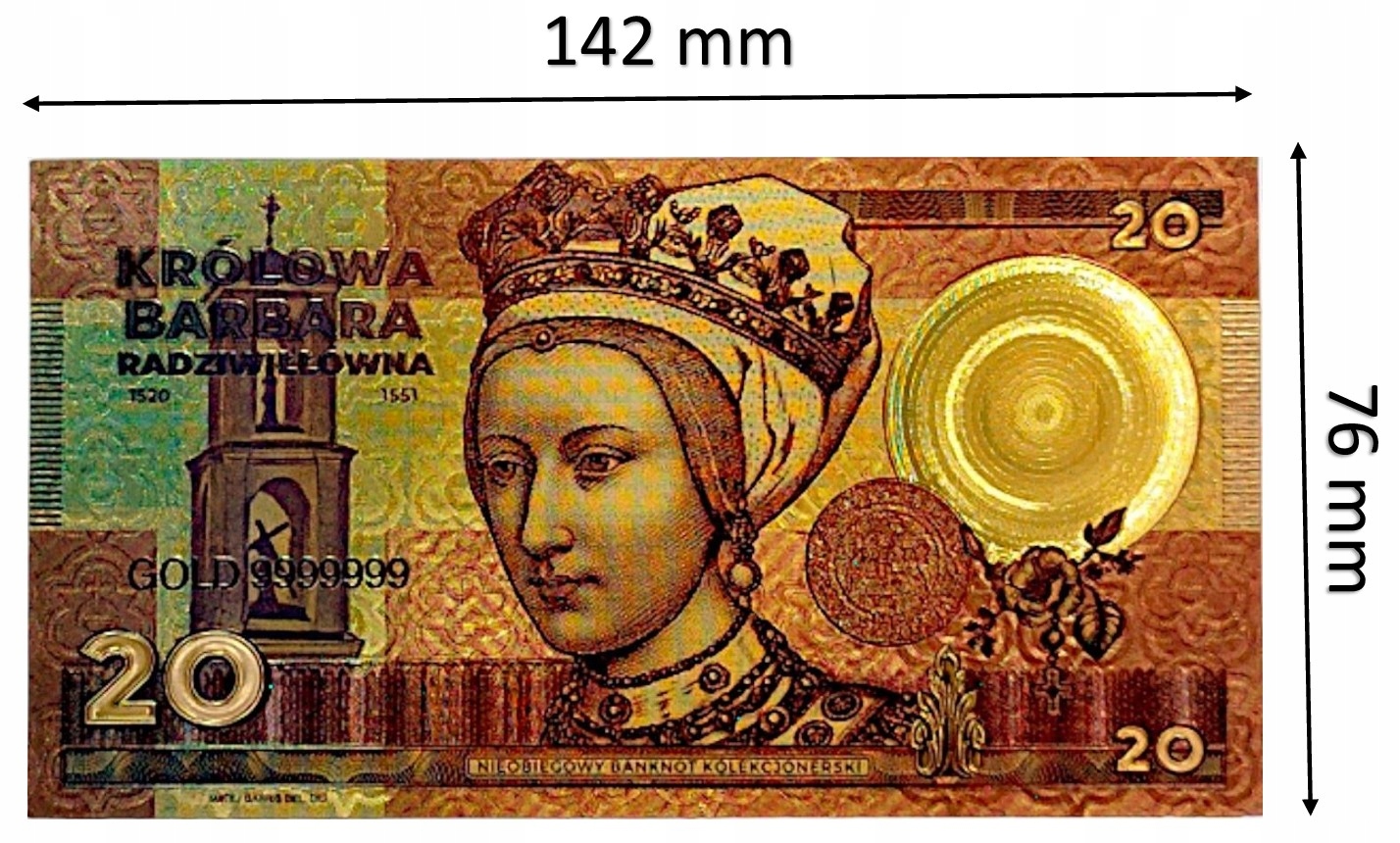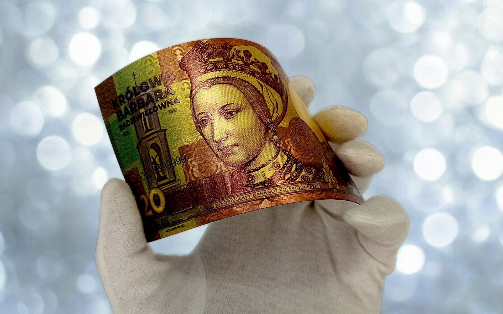 НЕОБЫЧНАЯ ПОЗОЛОЧЕННАЯ БАНКНОТА С КОРОЛЕВОЙ БАРБАРОВОЙ РАДЗИВИЛОВНОЙ