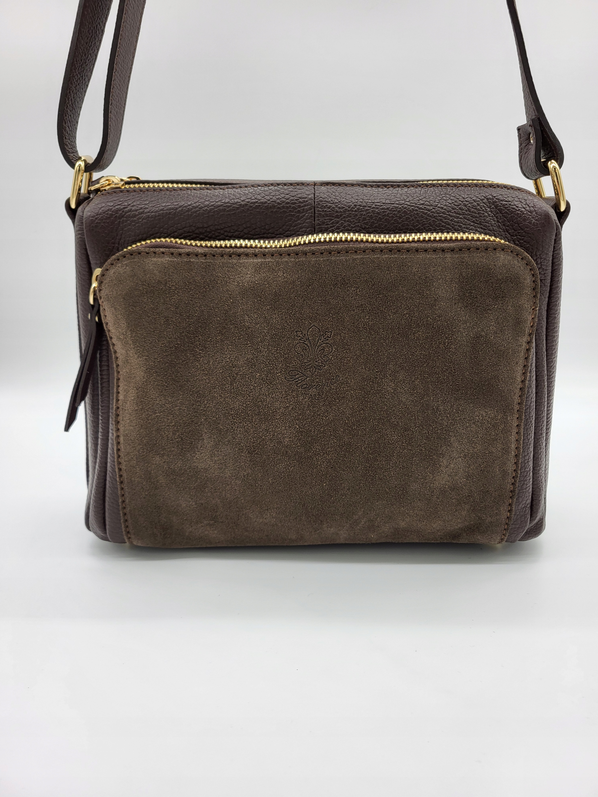 Модная кожаная сумка-мессенджер, коричневая, итальянский шоколад.