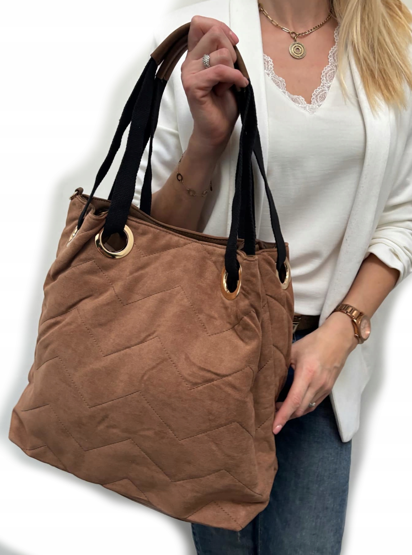 МОДНА ЗАМШЕВА СУМОЧКА-МІШОК SHOPPER А4 карамель