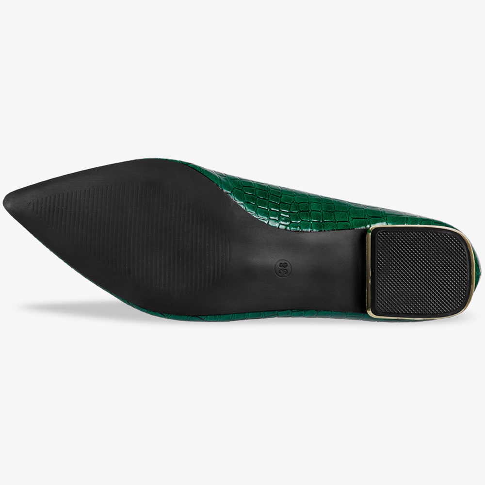 Зеленые лаковые балетки на невысоком декоративном каблуке и кожаной вставкой со змеиным узором Casu ER22WX1-G