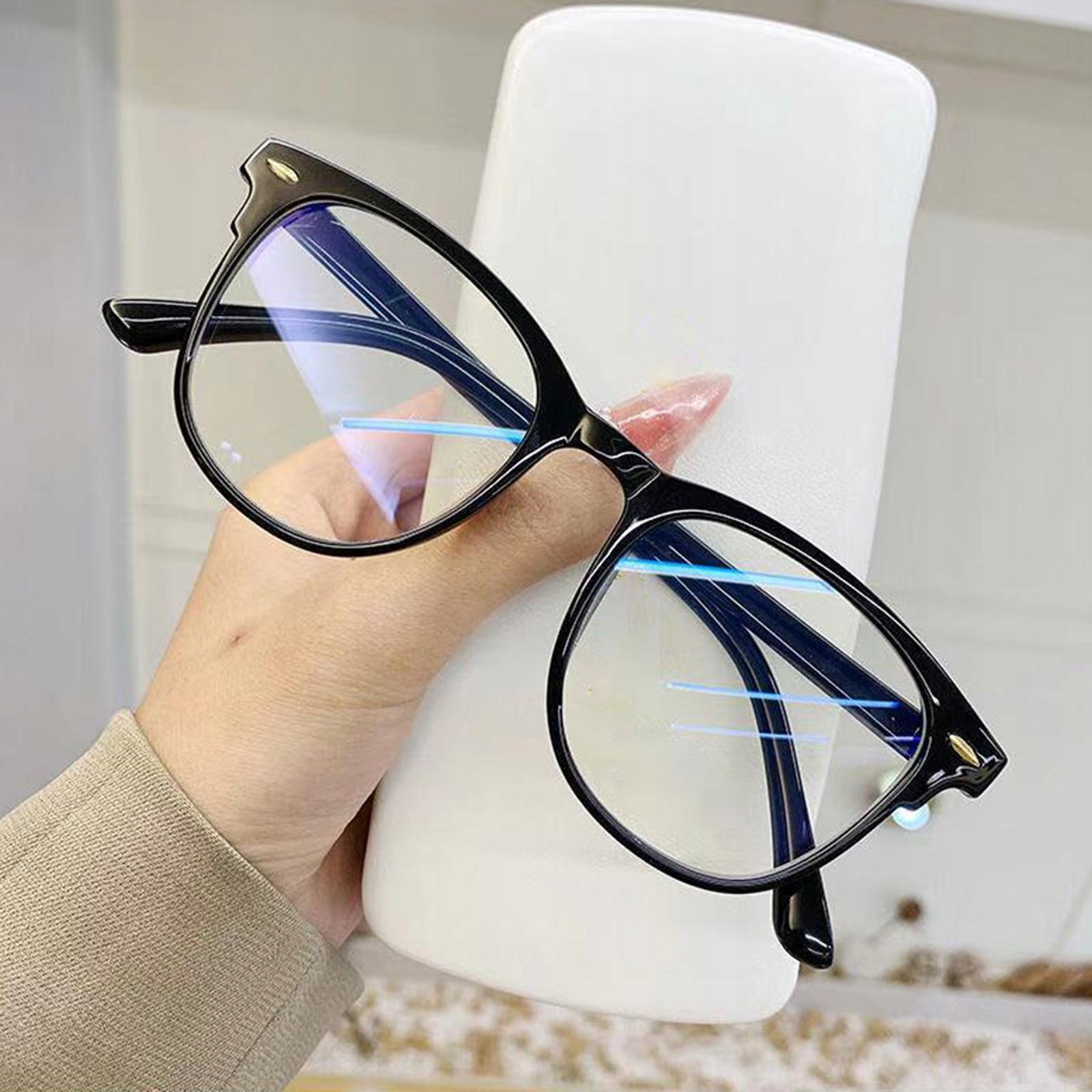 Модні окуляри для очей, прозоре блакитне світло, плоске дзеркало в повній чорній оправі