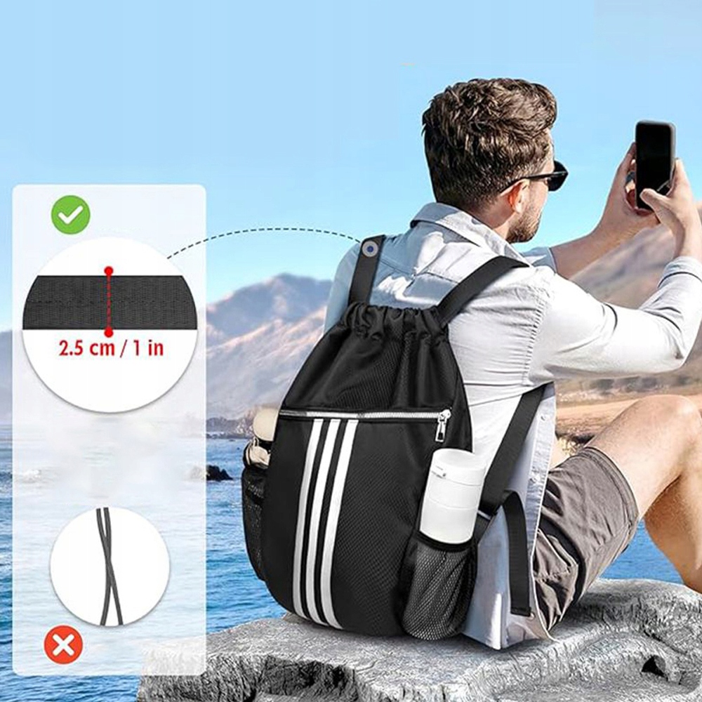 - nasz plecak ze ściągaczem ma wymary 50 x 40 см, Zapewniając Wystarczająco dużo miejsca do przenoszenia wszystkich warzeczy. Независимо от того, нужна ли вам спортивная сумка со спортивным оборудованием, папак с книгами с книгами или плавательная сумка с оборудованием, эта спортивная сумка с вальтом будет отвечать вашим потребностям. Этот большой рюкзак с выкройкой имеет два боковых кармана от сетки до зонтиков и чашек. Внутренний карман на молнии может разместить мелкие предметы, такие как клавиши, кошельки или мобильные телефоны.