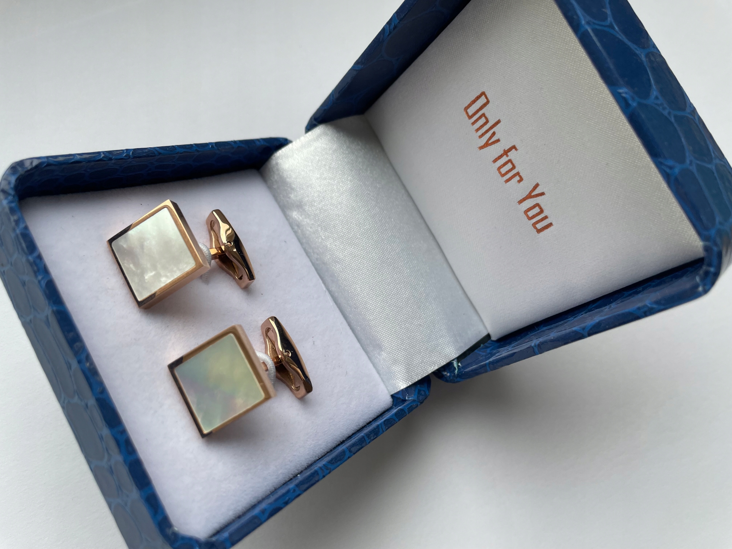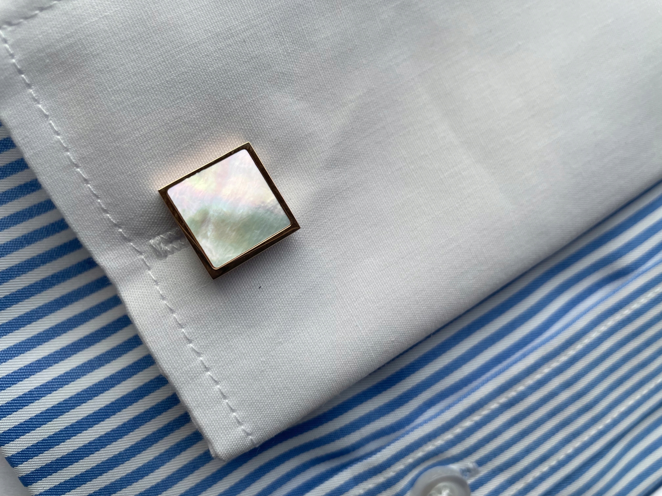 - Запонки сделаны из латуни. Позолоченная и отполированная, а затем была вставлена отшлифованная квадрат жемчужина.