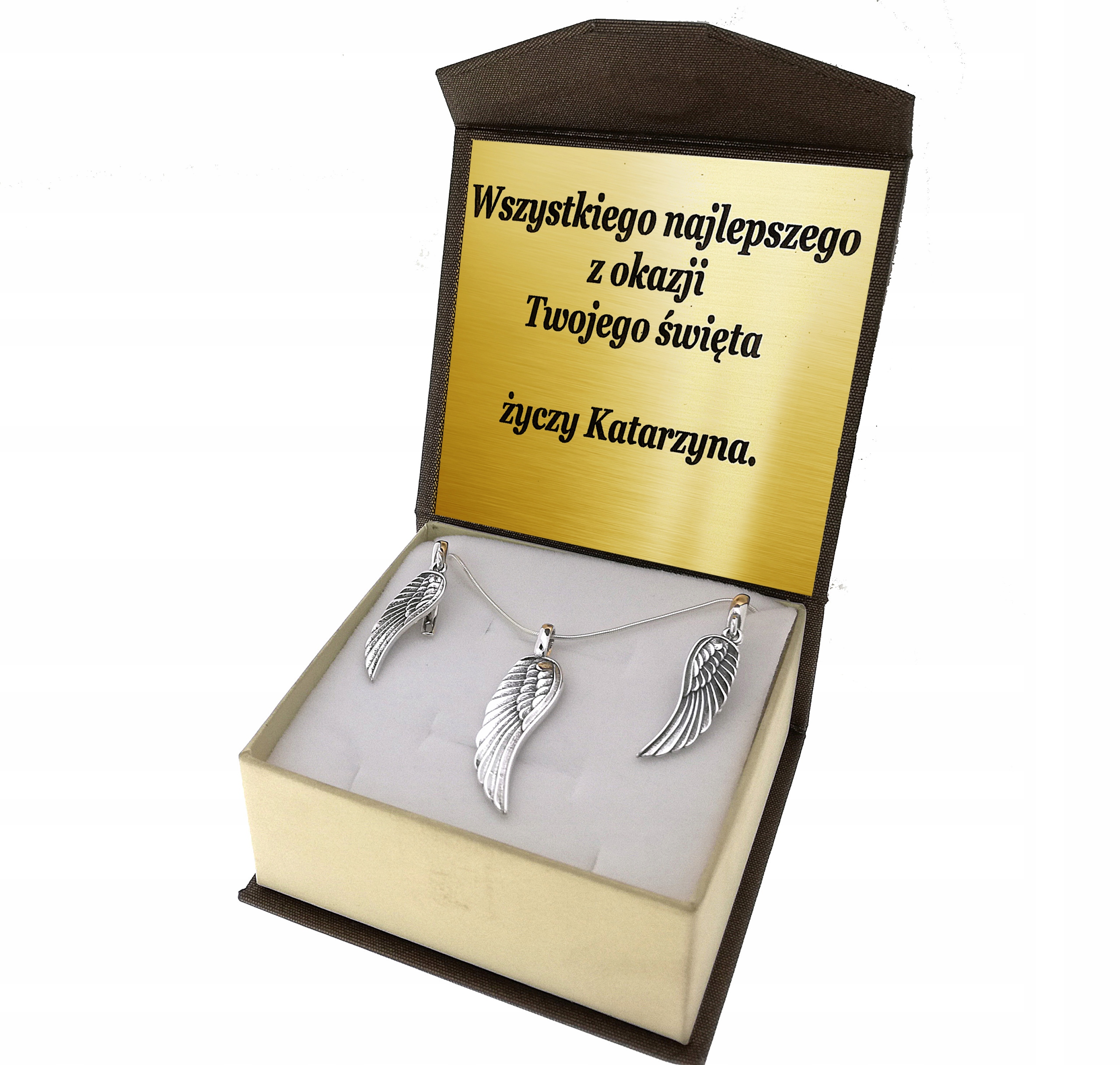 МОДНИЙ СРІБЛИНИЙ КОМПЛЕКТ 925 ПРОБИ КРИЛА АНГЕЛА + ГРАВІЮВАННЯ