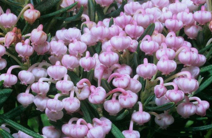 Чрезвычайно очаровательны его цветки в форме крохотных кувшинчиков, собранные по несколько штук на верхушках побегов и очень многочисленны.