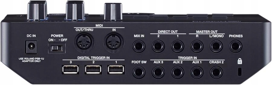 - Triggers inputs for Roland's advanced pads, such as the 14-inch digital Serbel PD-140DS and the 18-inch Ride CY-18DR plate