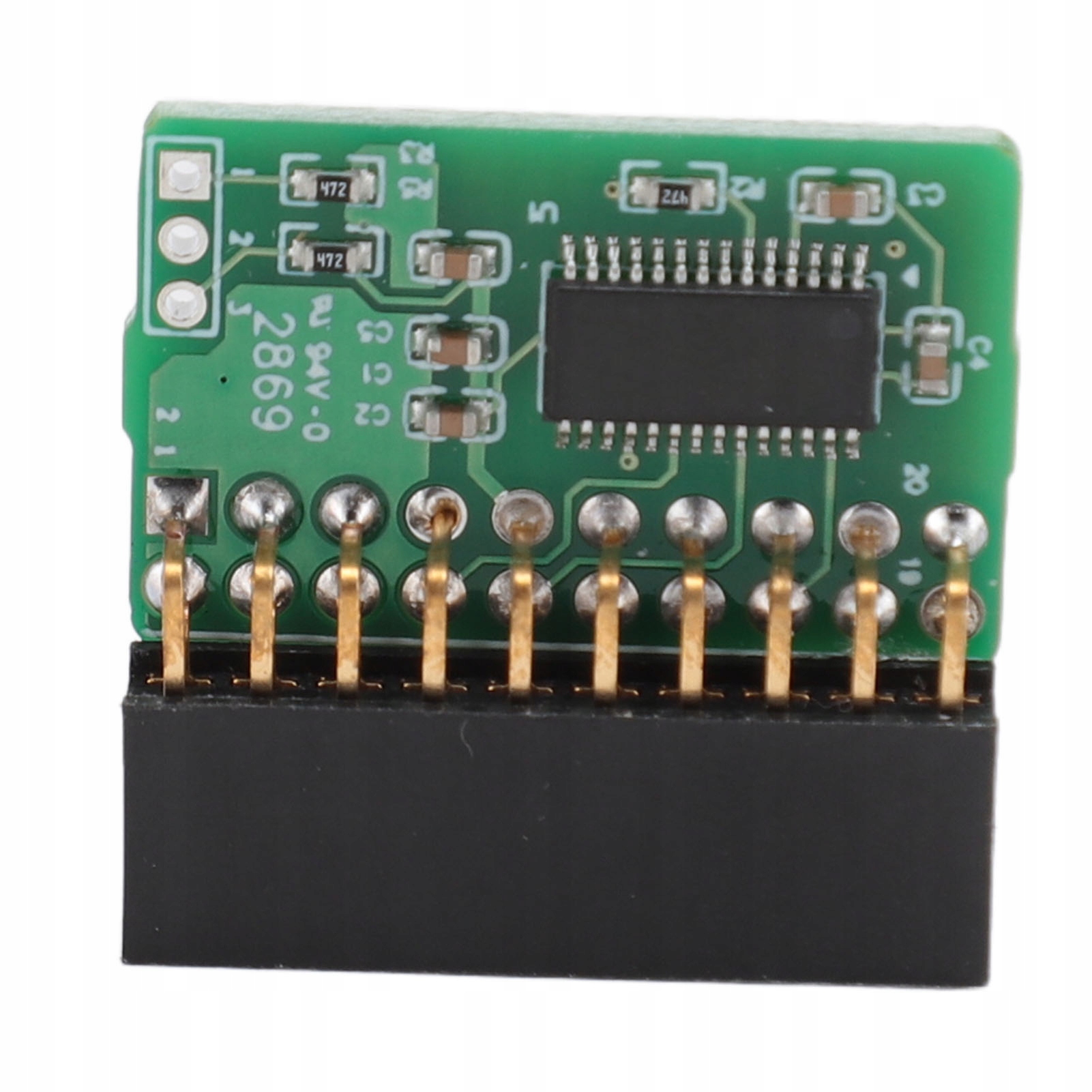 5. Вертикальная конструкция печатной платы: зеленая печатная плата этого модуля TPM 2.0 имеет вертикальную структуру, что обеспечивает удобное размещение и эффективное использование пространства в системе.