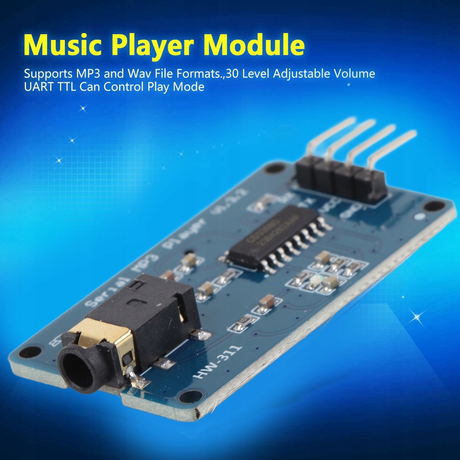 1. Модуль проигрывателя: поддерживает форматы файлов MP3 и WAV. Этот модуль музыкального проигрывателя обеспечит превосходное качество звука.
