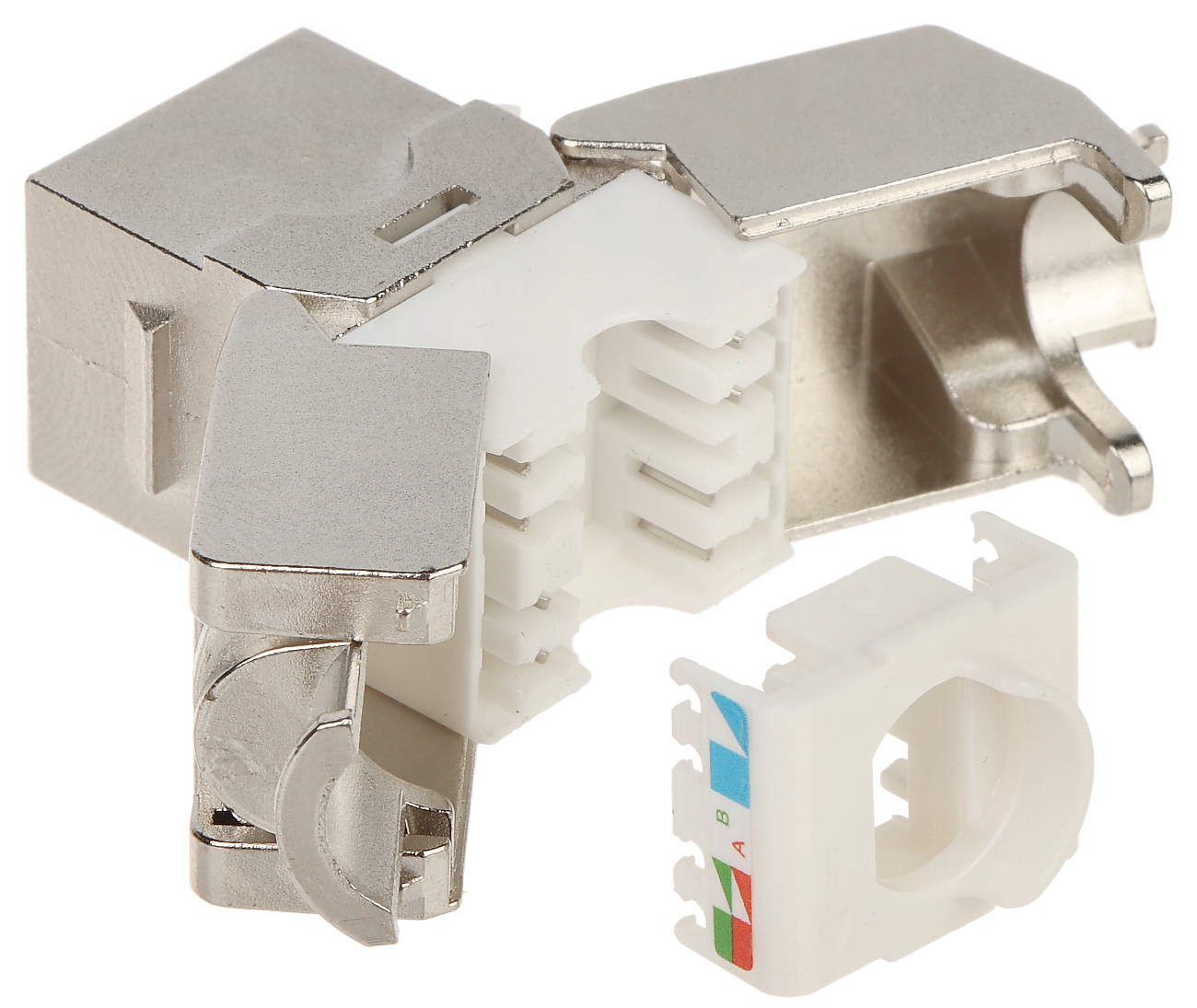 Особая форма корпуса обеспечивает минимальное распутывание кабеля и облегчает монтаж. Разъемы с прорезями имеют цветовую маркировку для облегчения правильной установки кабелей в последовательности 568A или 568B. Модуль собирается с помощью специального ударного инструмента. Защелкивающаяся крышка, установленная на прорезных разъемах, обеспечивает стабильность соединения и предотвращает выпадение кабелей.