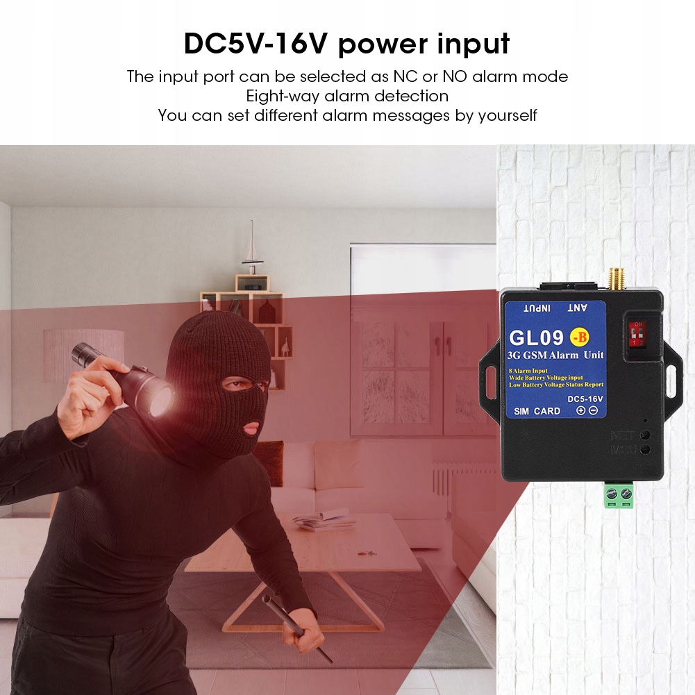 Беспроводной модуль оповещения GSM-сигнализации с 8 входами GL09‑B 3G для домашней безопасности