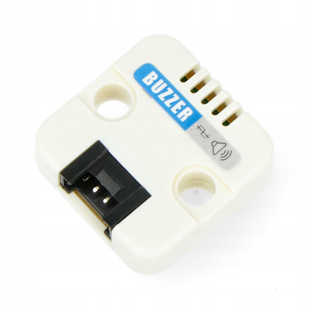Зуммер — небольшой пассивный зуммер с частотой 4 кГц. Модуль производит звук до 72 дБ (в радиусе 10 см от модуля) при номинальной входной мощности. Он имеет компактные размеры, защитный корпус и потребляет очень мало энергии. Он используется для различных проектов сигнализации.
