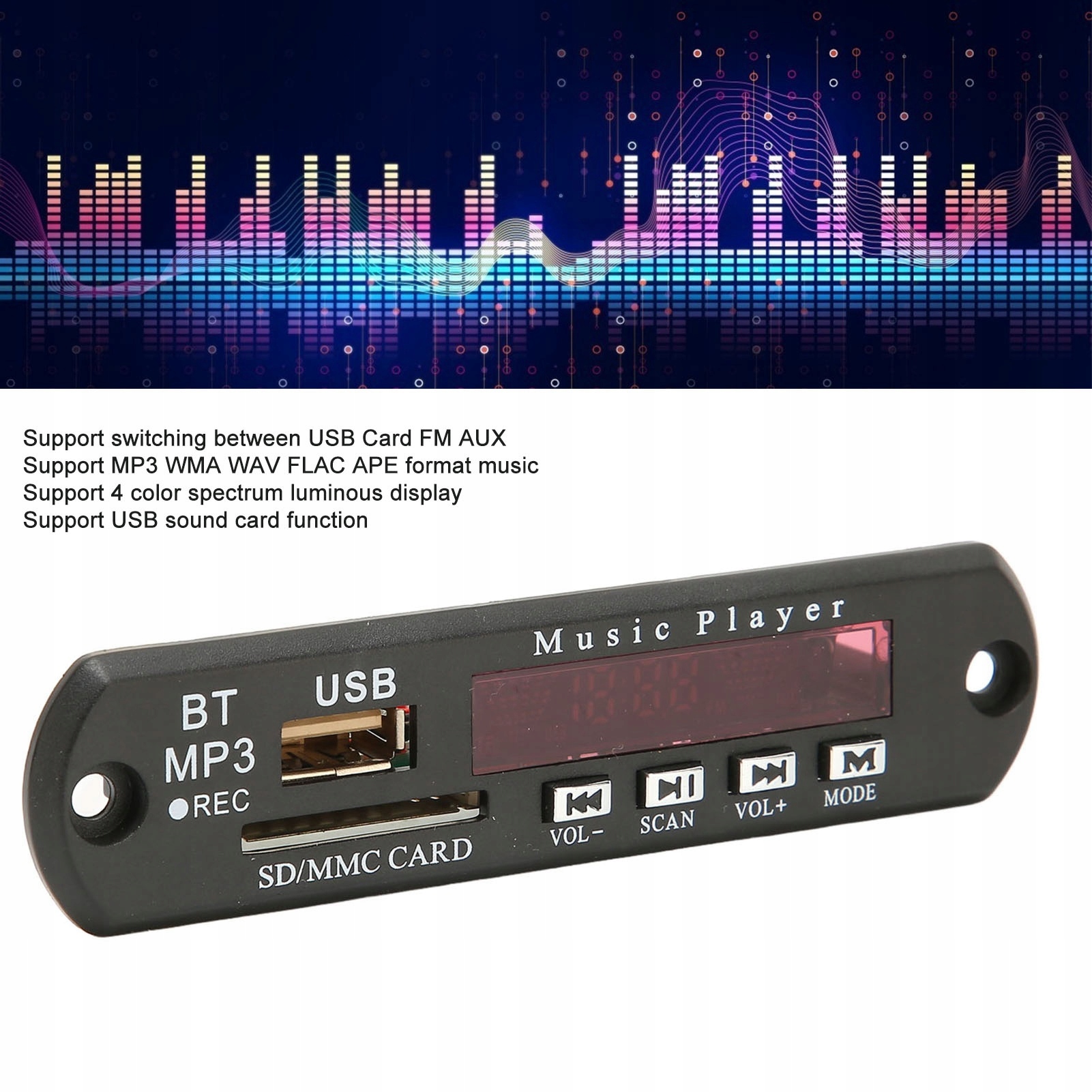 3. Многофункциональность: модуль платы декодера поддерживает переключение между USB, картой, Bluetooth, FM и AUX. Преобразование оповещений и номеров вызывающих абонентов. Поддерживает музыку в форматах MP3, WMA, WAV, FLAC, APE. Песни в формате MP3: 32–320 кбит/с, APE без потерь, WAV, WMA, FLAC: менее 1411 кбит/с.
