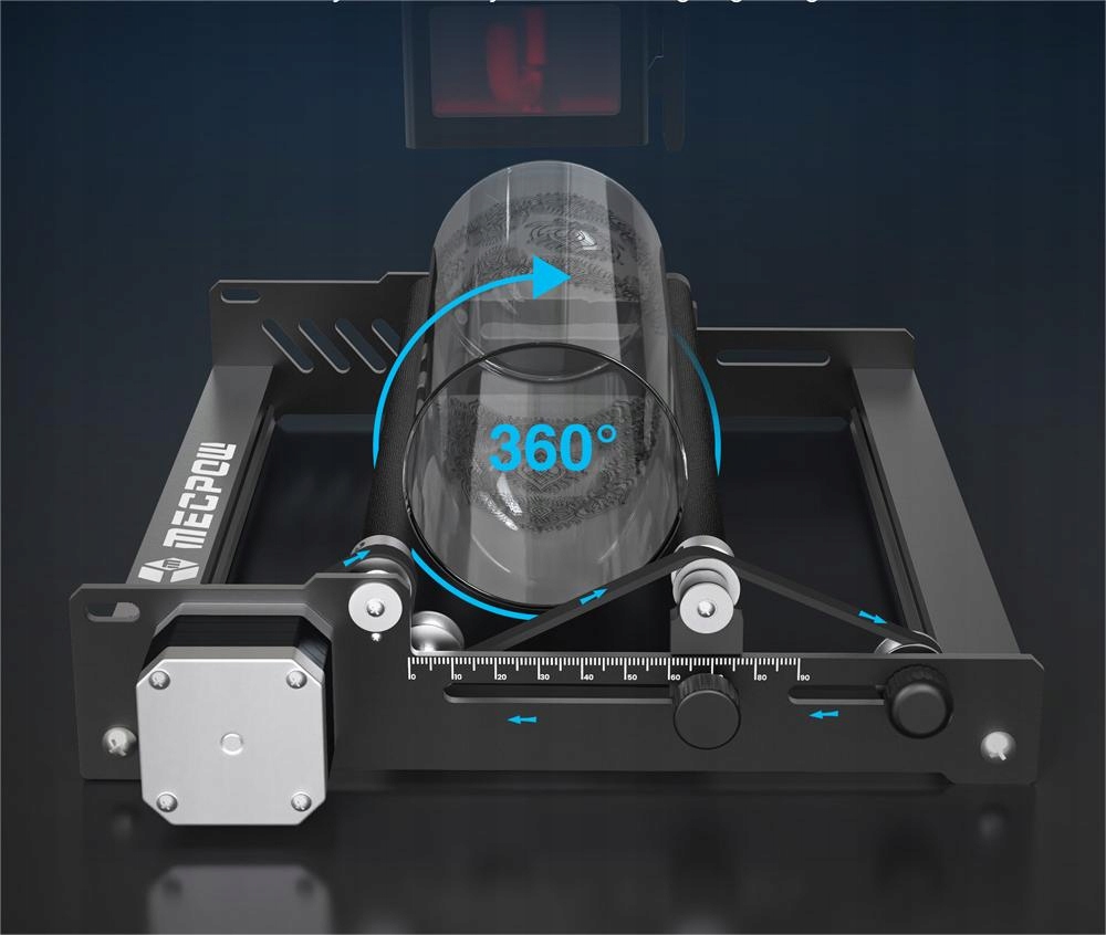 Mecpow G3 Pro имеет 4 подъемных кронштейна, что позволяет увеличить размер гравировки. Вращающийся вал имеет высокое удобство использования. Он способен без проблем работать с 95% гравировальных станков, доступных на рынке.