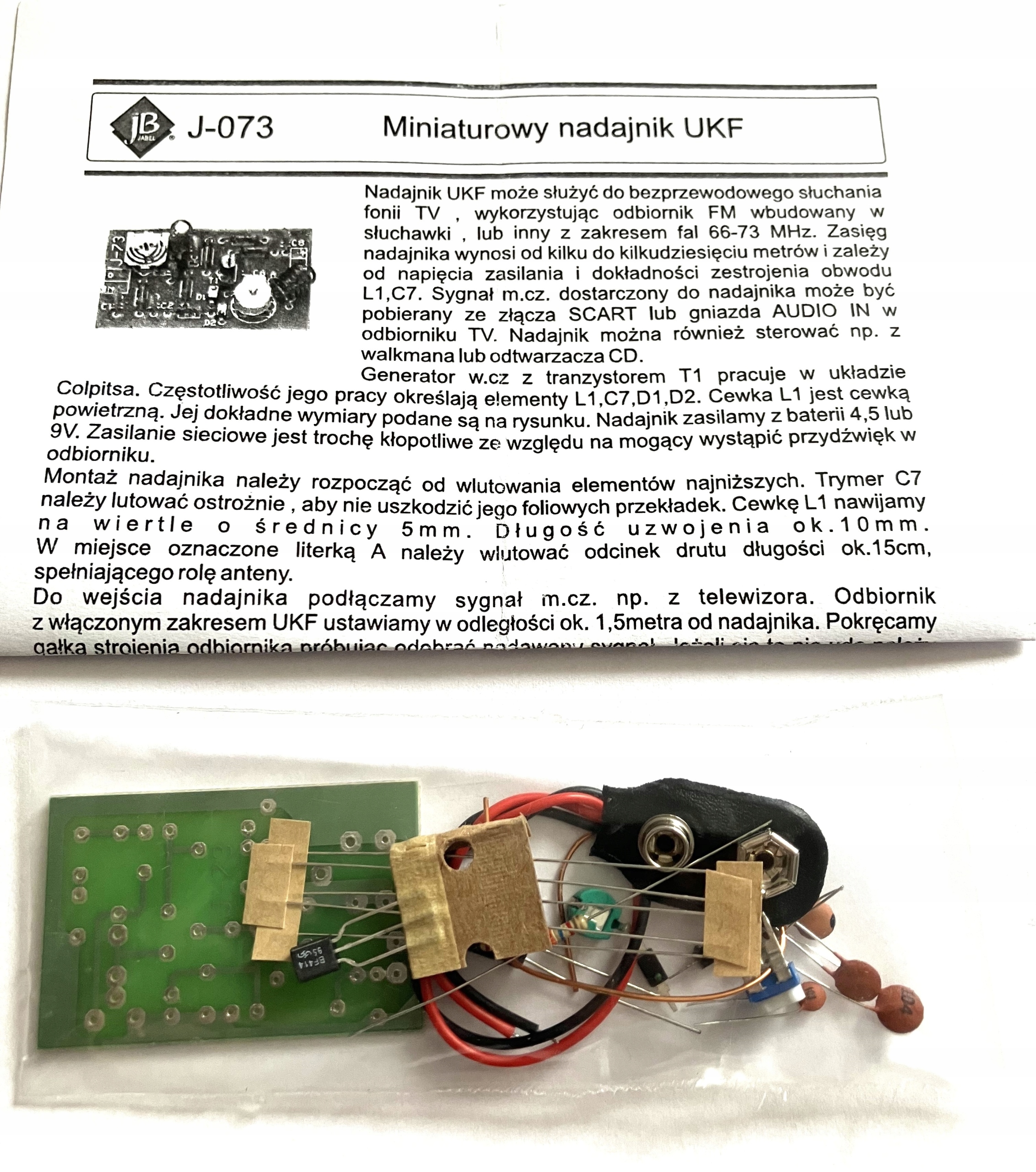 может работать, например, С телевизором, позволяющим слушать любой приемник с диапазоном VHF 66-73 МГц, расположенный в другой комнате.
