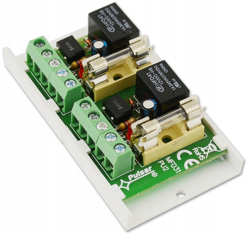 Модуль реле AWZ 512 PU 2 предназначен для использования в установках с низким содержанием. Он используется для контроля, сигнальных состояний, например, В системах сигнализации, контроль доступа. Его можно использовать для управления устройствами с высоким энергопотреблением с помощью выходов систем сигнализации. Кроме того, он обеспечивает гальваническое разделение сигналов, источников питания по отношению к выходам модуля.