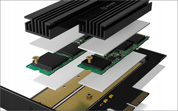 Карта расширения PCIe для 2 твердотельных накопителя M.2 с радиатором.