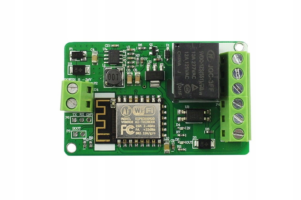 Модуль Yunshan для IoT построен на базе модуля ESP-12 с системой esp8266 и реле, большим преимуществом модуля является цифровой вход, защищенный оптопарой. В модуле имеется DC\DC преобразователь, позволяющий питать модуль постоянным напряжением 7-30В, а также модуль дополнительно защищен от слишком высокого напряжения питания и тока нагрузки.