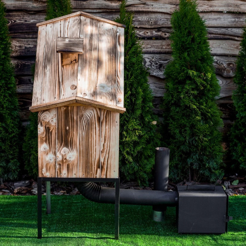 - Политическое дерево, что гарантирует, что копченой продукты не замочивают запах краски, его сборка очень проста. Все элементы идеально подходят