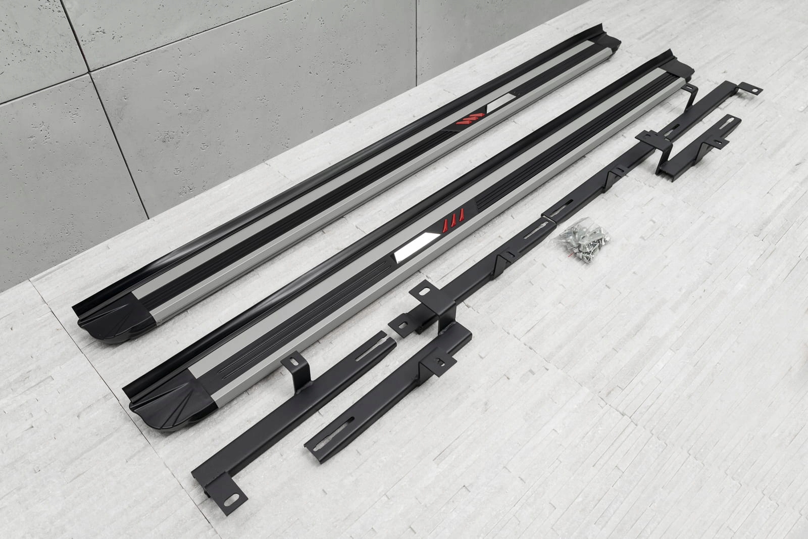 В комплект входит комплект боковых подножек (правых и левых), элементы для сборки и инструкция. Пороги монтируются на заводские точки крепления. Установка ступеней не требует сверления дополнительных отверстий! Рекомендуем профессиональную установку в мастерской.