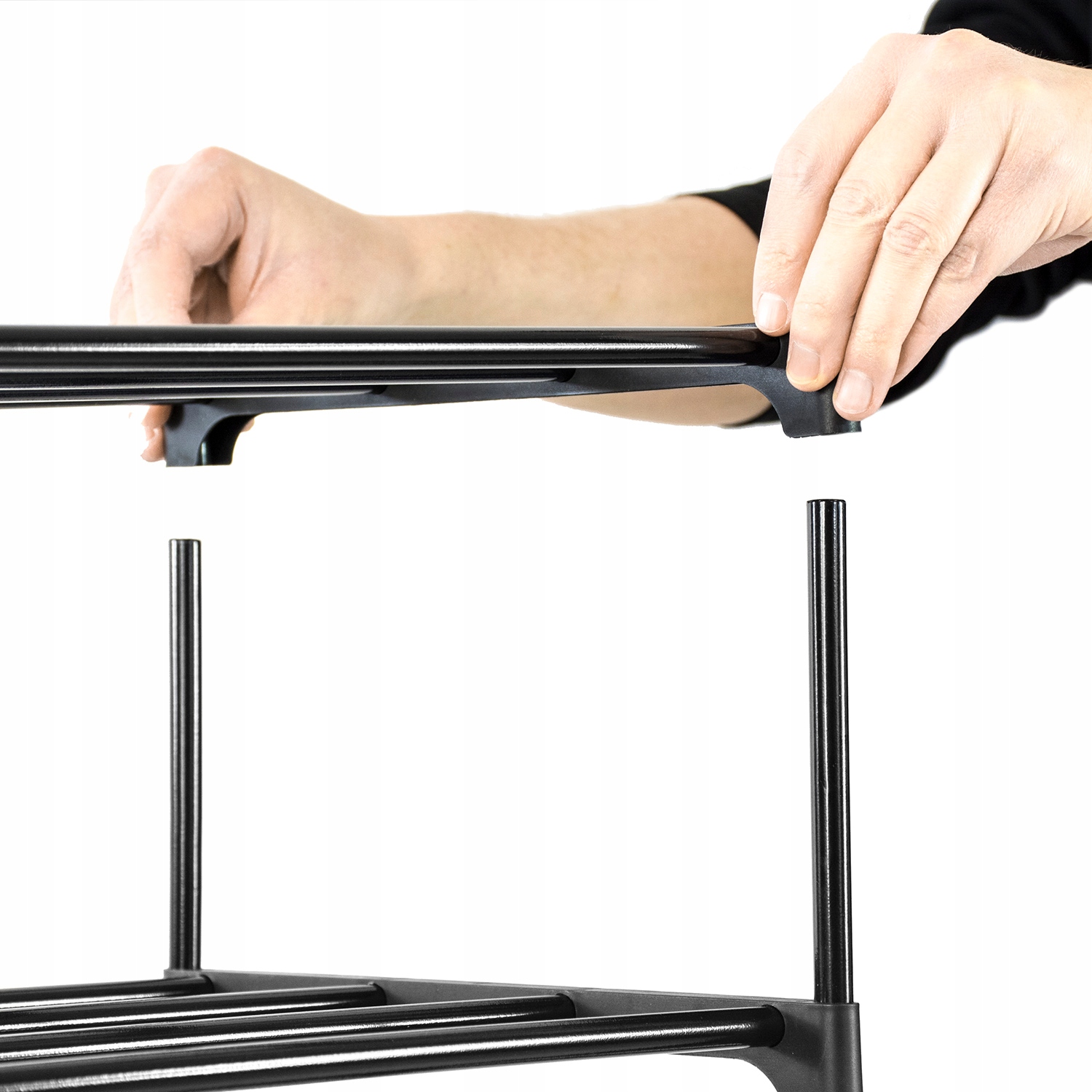 Складывание стойки интуитивно понятно и занимает несколько минут. Все элементы и инструкции включены в набор.