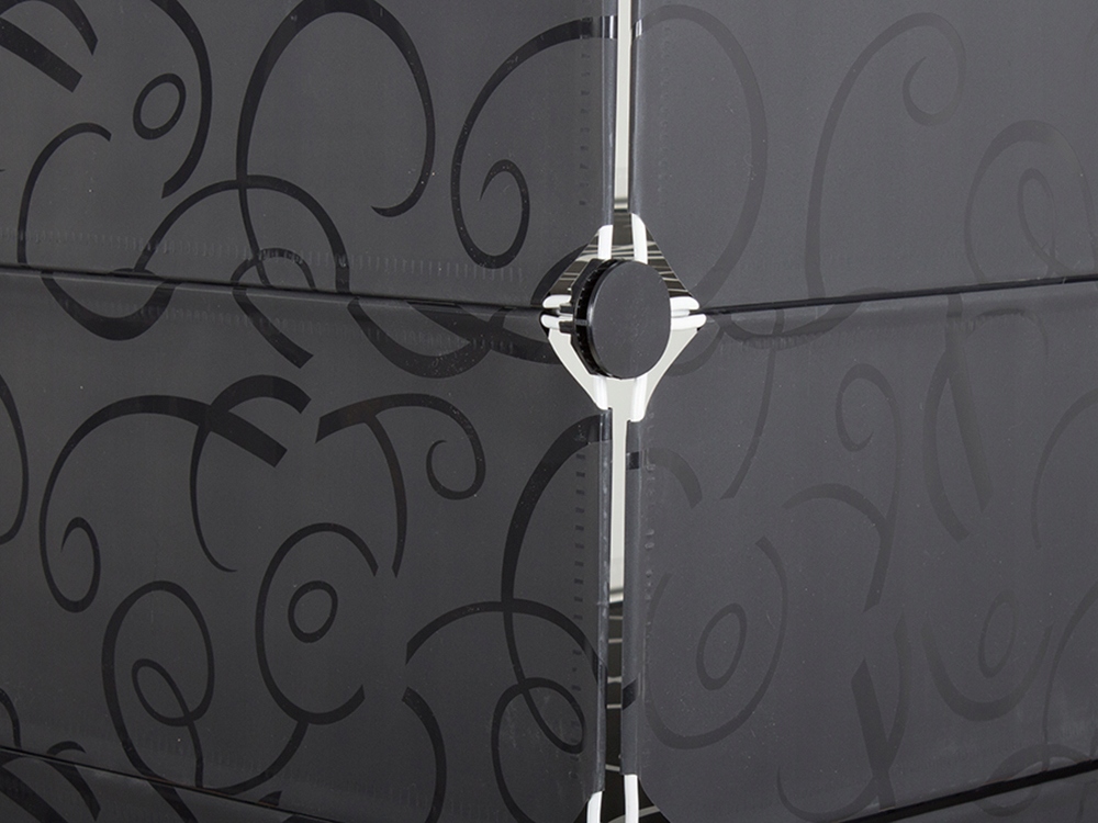 Благодаря модульной структуре его очень легко собрать. Все, что вам нужно сделать, это соединить металлические рамки разъемами соответствующим образом. Шкаф имеет дверцы с белым узором, которые можно установить так, чтобы они открывались вправо или влево, в зависимости от ваших потребностей. Материал, из которого изготовлен шкаф, водонепроницаемый и легко чистится.