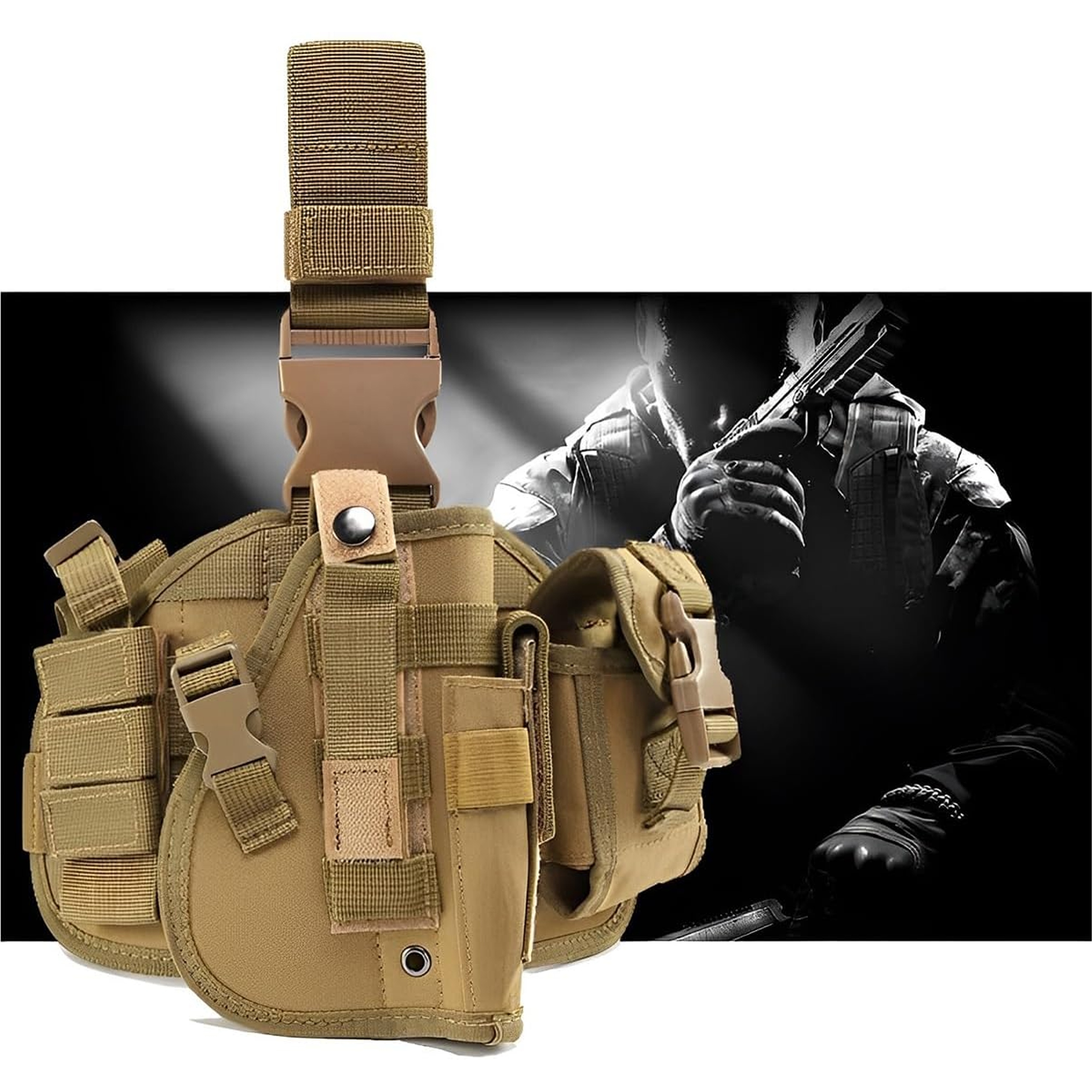 МОДУЛЬНА ВІЙСЬКОВО-ТАКТИЧНА ПАНЕЛЬ СТЕГНА З КОБУРОЮ ДЛЯ ПІСТЛЕТА MOLLE ASG