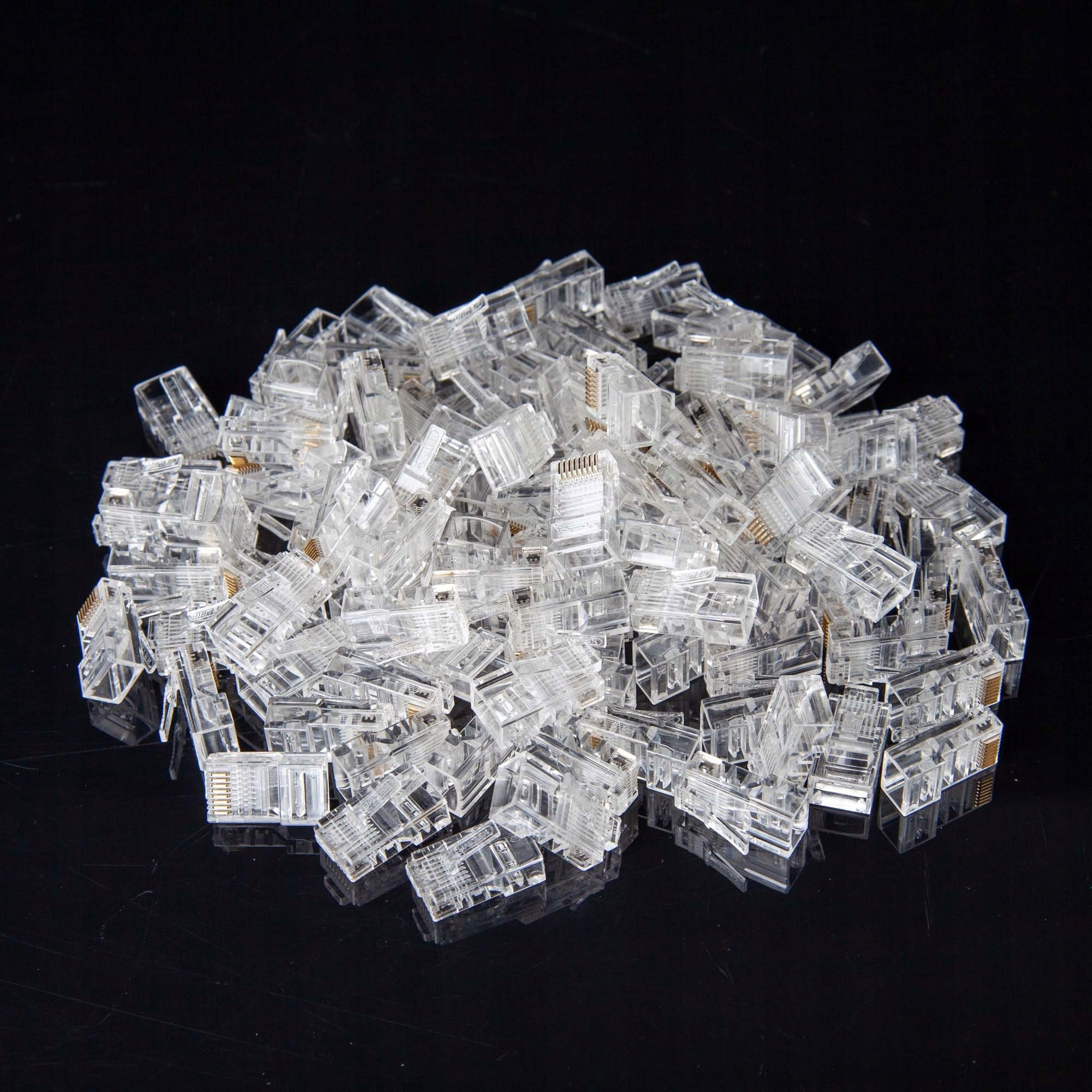 rj45 Plug -это восемь скоростных стандартных разъемов, который чаще всего используется для завершения кабелей «Twist» в установках компьютерных сетей. Категория 6 Он может перекрестных данных до 1 Гбит / с. Модульная заглушка RJ-45 монтируется путем затягивания стандартного нажатия к кабелям. Пакет содержит 100 штук