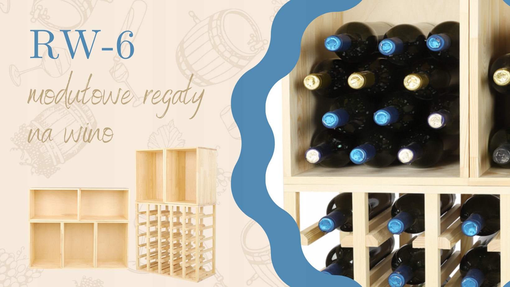 Модульна винна стійка RW-6 - Натуральне дерево