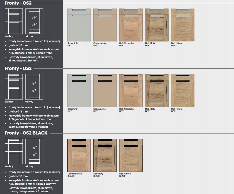 - ящики DSS ... с увеличением прочности нагрузки (до 35 кг/с ящиком), в основном 50 см с полным слайдом, ширина 40, 45, 50, 55, 60, 65, 70, 75, 80, 85, 90 см. Ящики с закрытием и мягким закрытием.