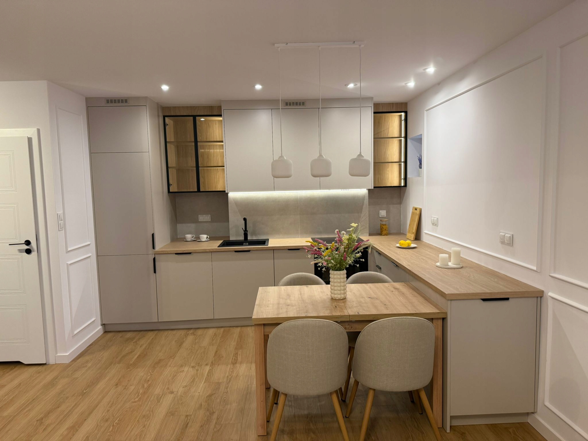 Это оригинальная комбинация цвета и рисунка. Кухня с белой рамой, матовые фронты в сочетании с красивой окраской из дерева arlington Oak , и все это дополняется черными ручками, интегрированными спереди, благодаря которой кухня уникальная, красивая и приобретает, насколько модной. Дополнительные аксессуары, которые позволяют адаптировать кухню к вашим потребностям и предпочтениям.