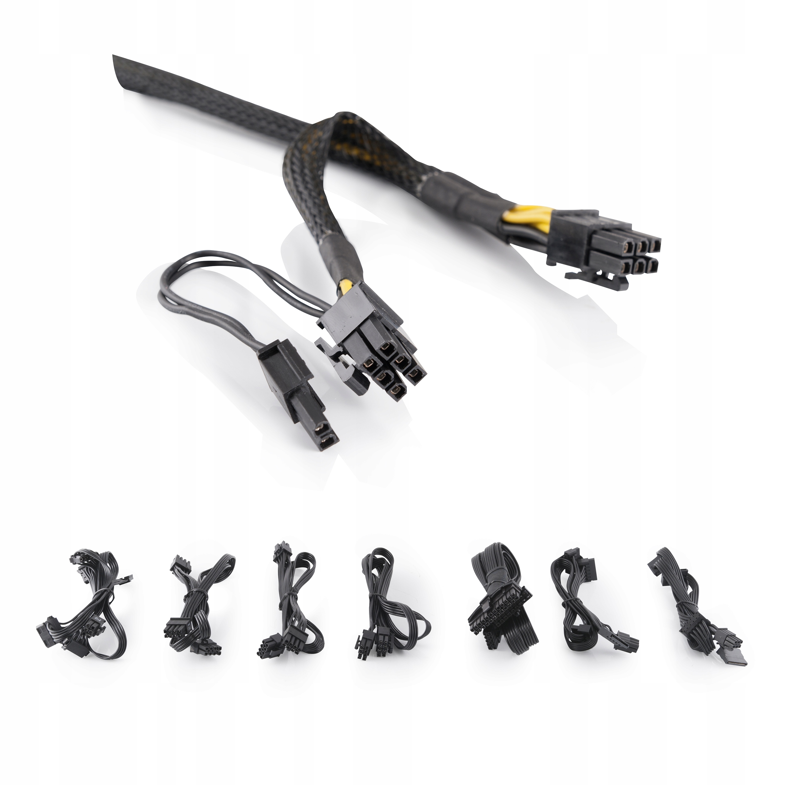 Питание оснащено шестью серийными разъемами питания AATA (для жестких дисков и оптических дисков) и универсальным питательным разъемом для 20/24-контактных питания для материнских плат.