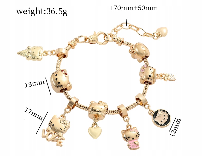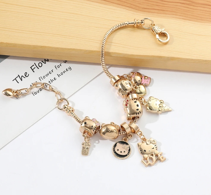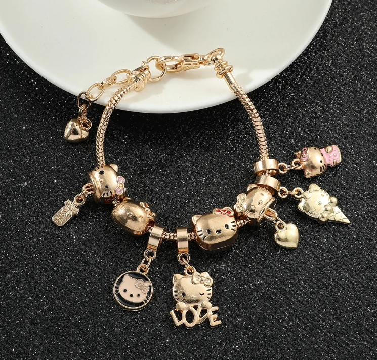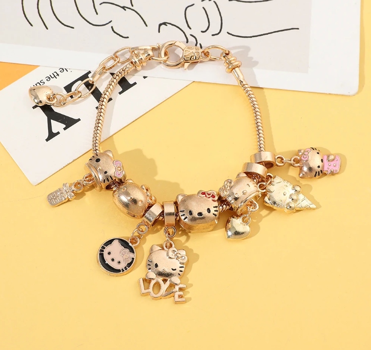 Модульный браслет Kitty Hello Kitty Подвесная подвеска подвеска Gold Часть котенка
