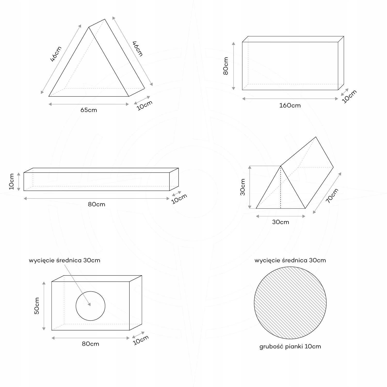 - Размер подушки треугольника 65 x 46 x 10 см - 3 части