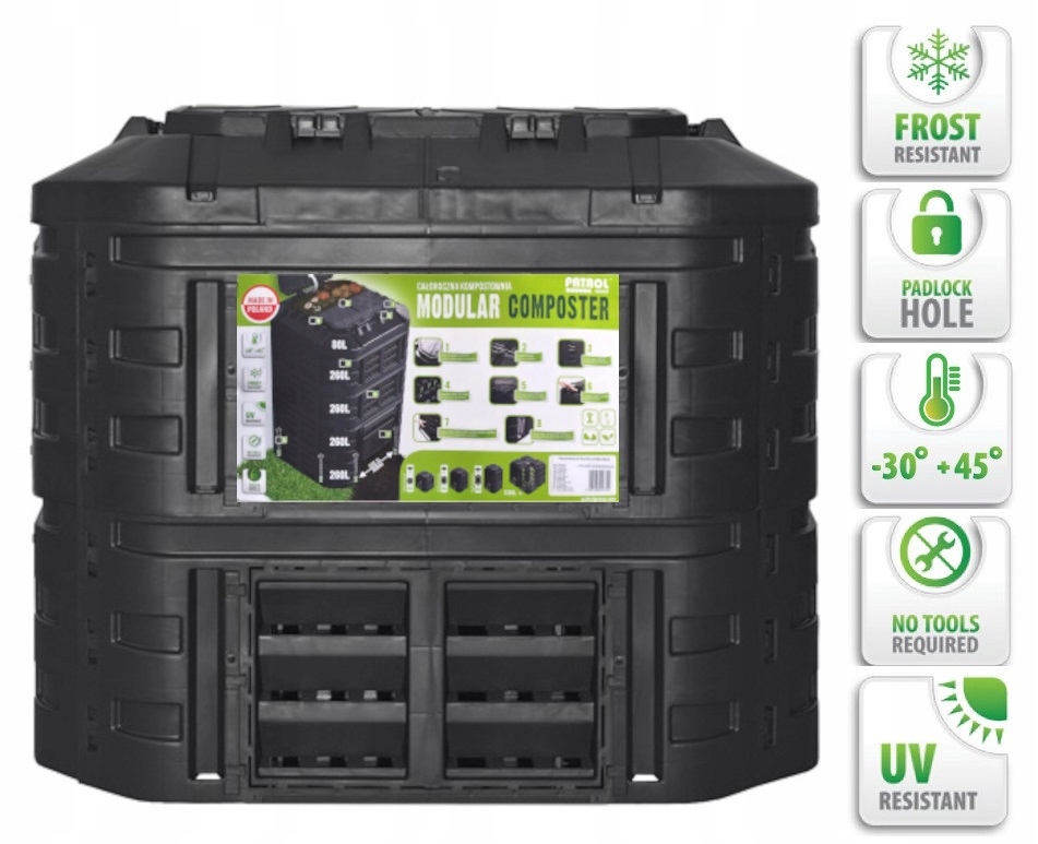Модульные компостеры от Patrol Group — это продукт, который адаптируется к вашим потребностям. Благодаря конструкции контейнера из модулей, вы можете свободно менять его вместимость в зависимости от ваших потребностей.