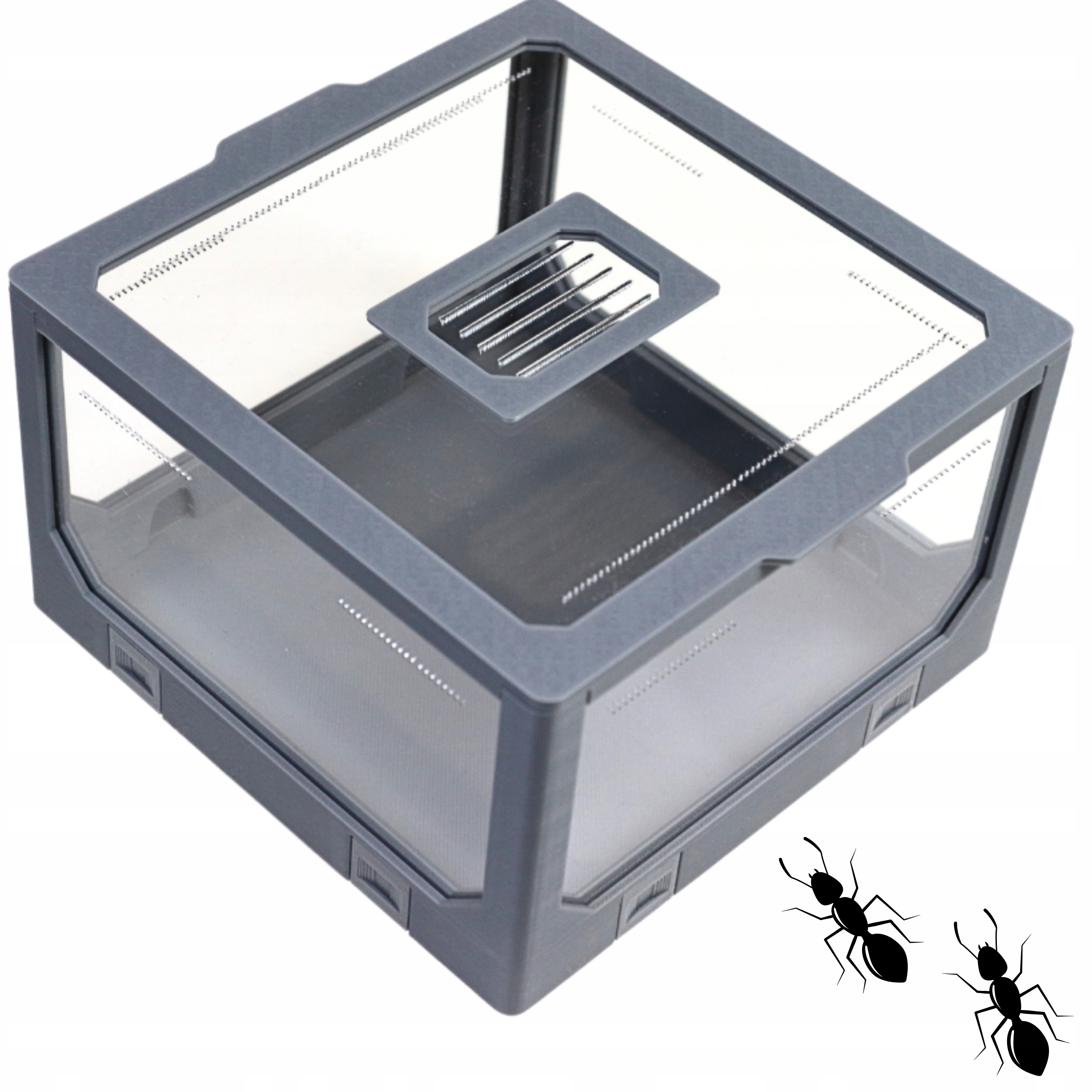 - Подходящие условия для размножения муравьев - созданы для оптимальной вентиляции (вентиляция в крышке и боковых стенках) и увлажнения (возможность приобретения внешней поилки)