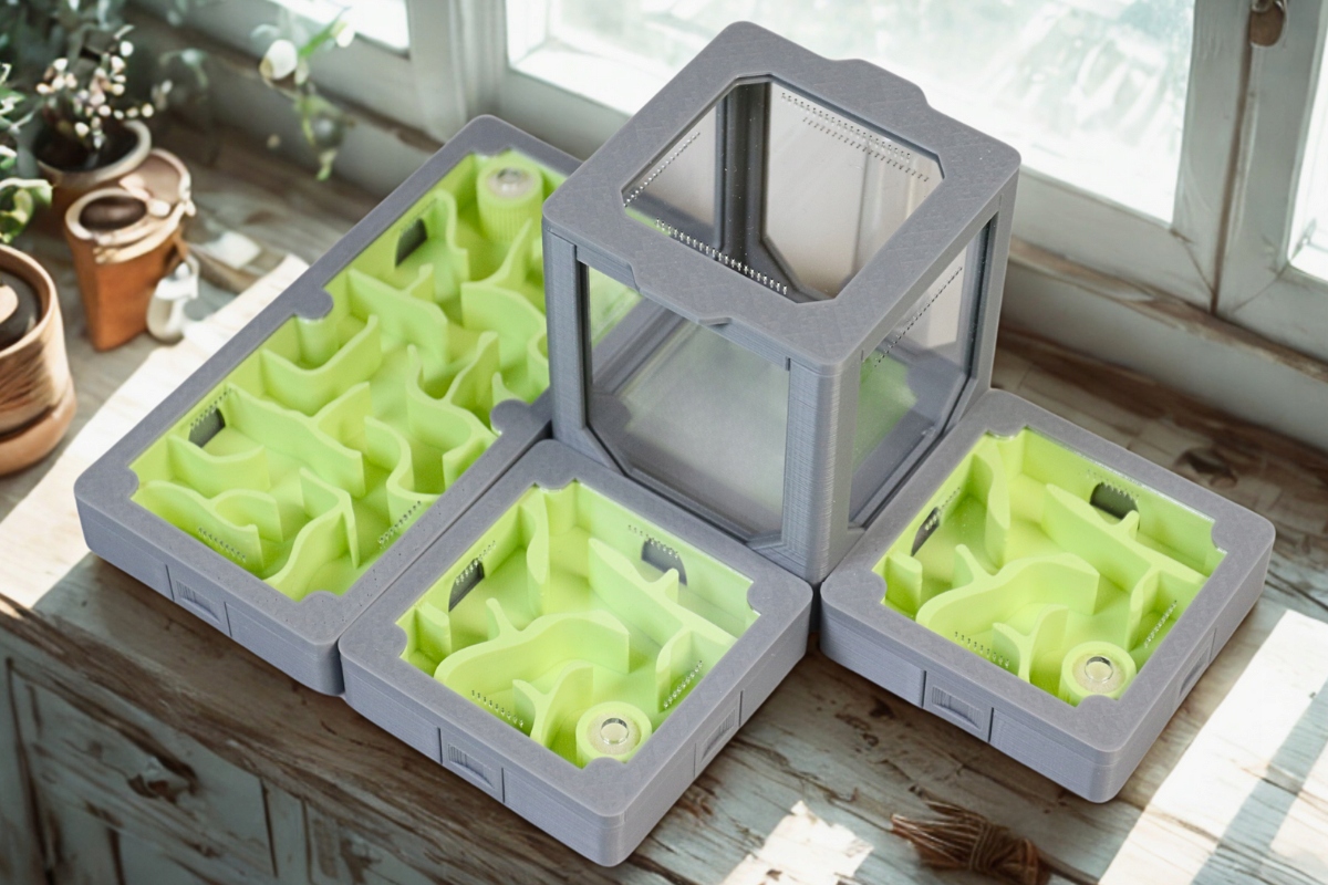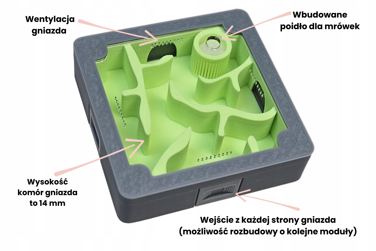 Современное гнездо AntLove 7х7 см — идеальное решение для заводчиков муравьев, которые ценят функциональность и возможность расширения колонии. Изготовленный с помощью высококачественной 3D-печати, он обеспечивает долговечность и эстетику, а вентилируемое верхнее окно из плексигласа гарантирует достаточную циркуляцию воздуха.