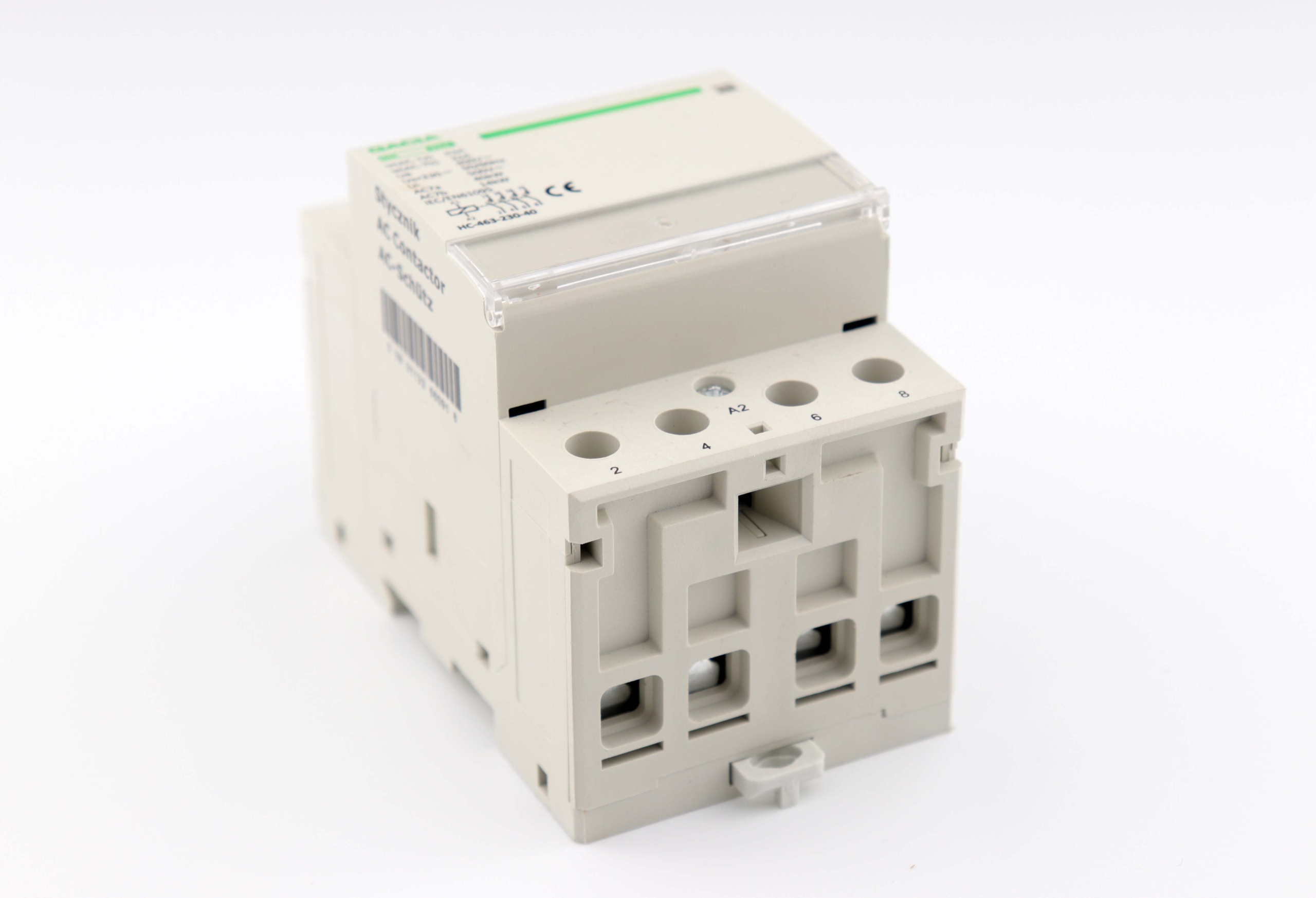 Модульный контактор HC - электрический механический переключатель, управляемый не вручную, только с одним положением покоя подвижных контактов (НО, нормально разомкнутый), способный включаться, выключаться и проводить ток при нормальных условиях. условий эксплуатации цепи, а также перегрузок.