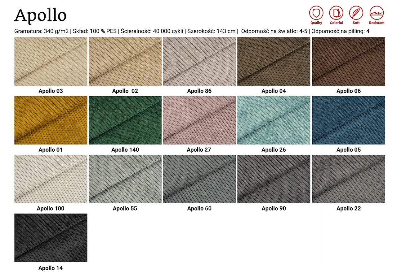 Диван обтянут высококачественной вельветовой тканью, которая сочетает в себе стильный вид и исключительный комфорт использования. Характерные мягкие вельветовые полосы не только придают мебели элегантный и современный вид, но и делают ее приятной на ощупь.