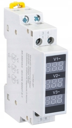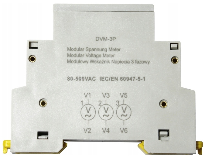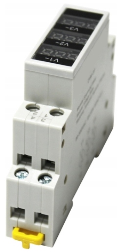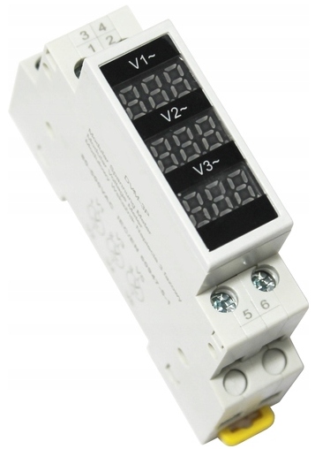 Значение измерения указывается с использованием цифрового индикатора - имеющего отдельный дисплей для каждой фазы, указывающий на значение текущего напряжения в режиме реального времени. Индикатор монтируется на стандартной рельсе TH35.