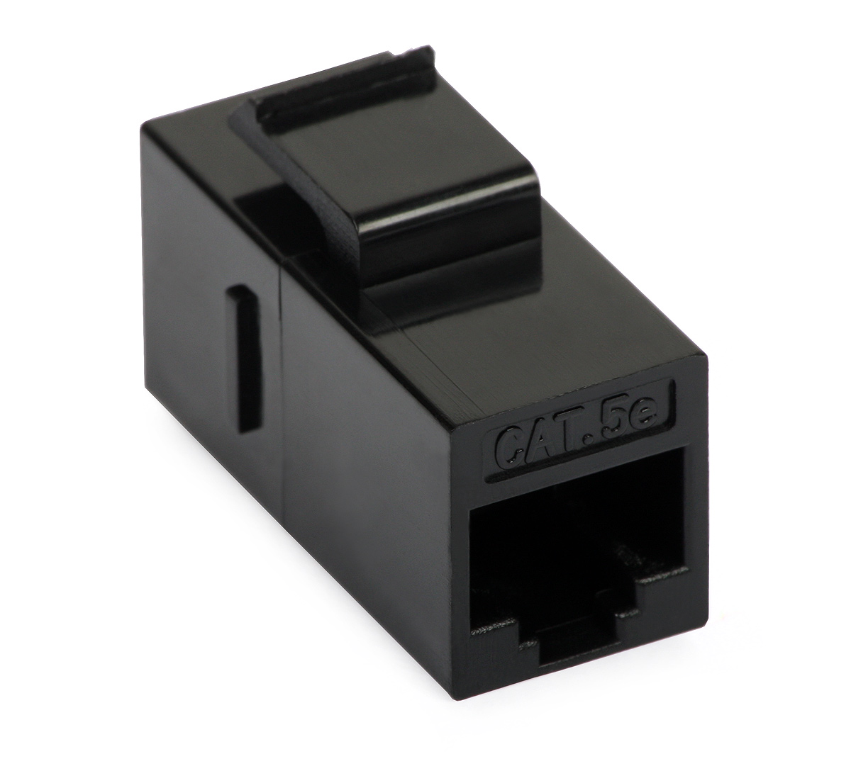 Модульный разъем Keystone с двумя розетками RJ-45 категория 5E. Это позволяет подключить две секции некомпонированного 8-проводного кабеля, выполненного с обеих сторон с помощью модульных разъемов.