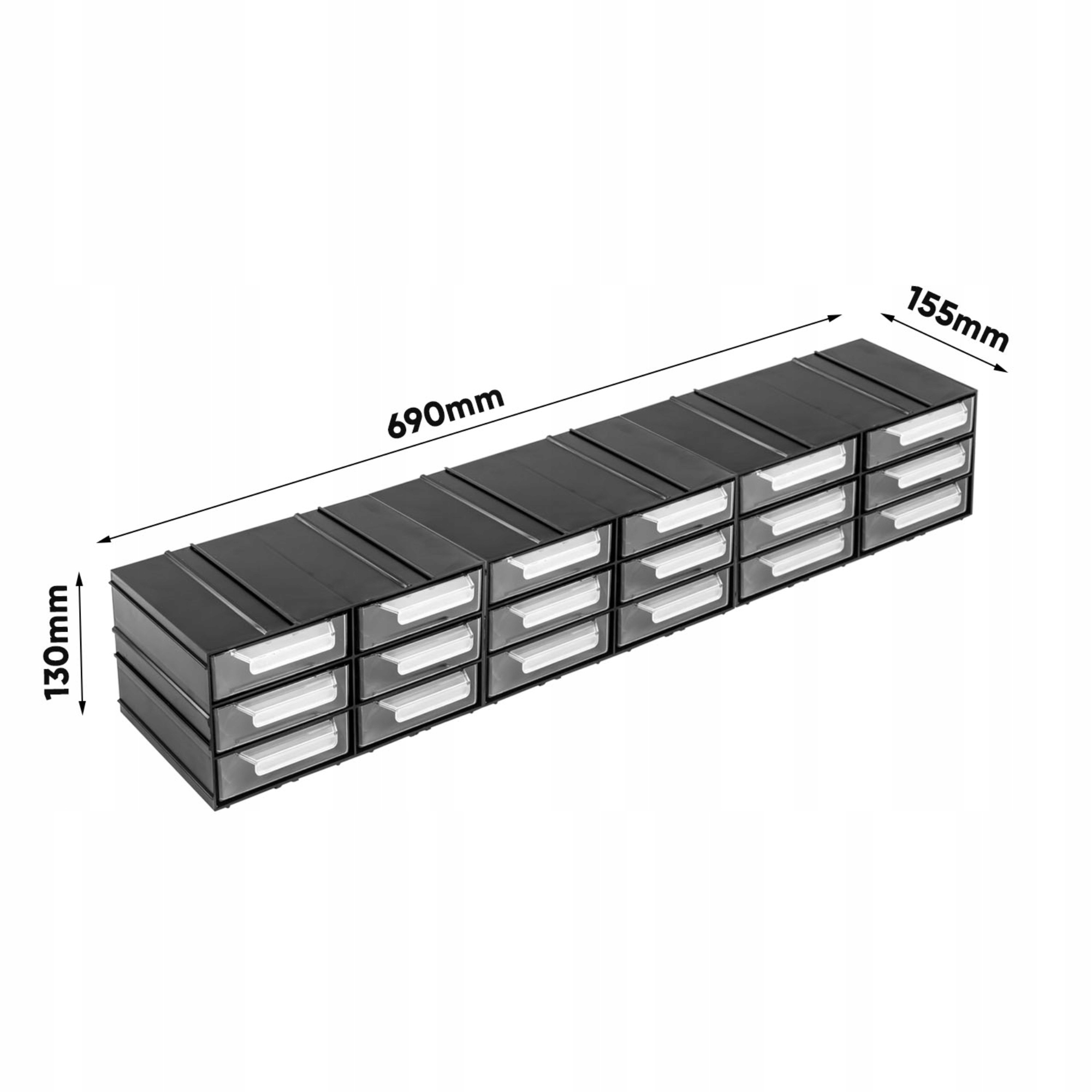 Совместимость с модулями на 2, 4, 6 и 12 картриджах означает, что вы можете свободно расширить размер своего шкафа в соответствии с индивидуальными предпочтениями. Используйте его для хранения электронных компонентов, винтов, прокладок, штампов и других мелочей. Мы гарантируем, что все самые важные вещи будут под контролем.