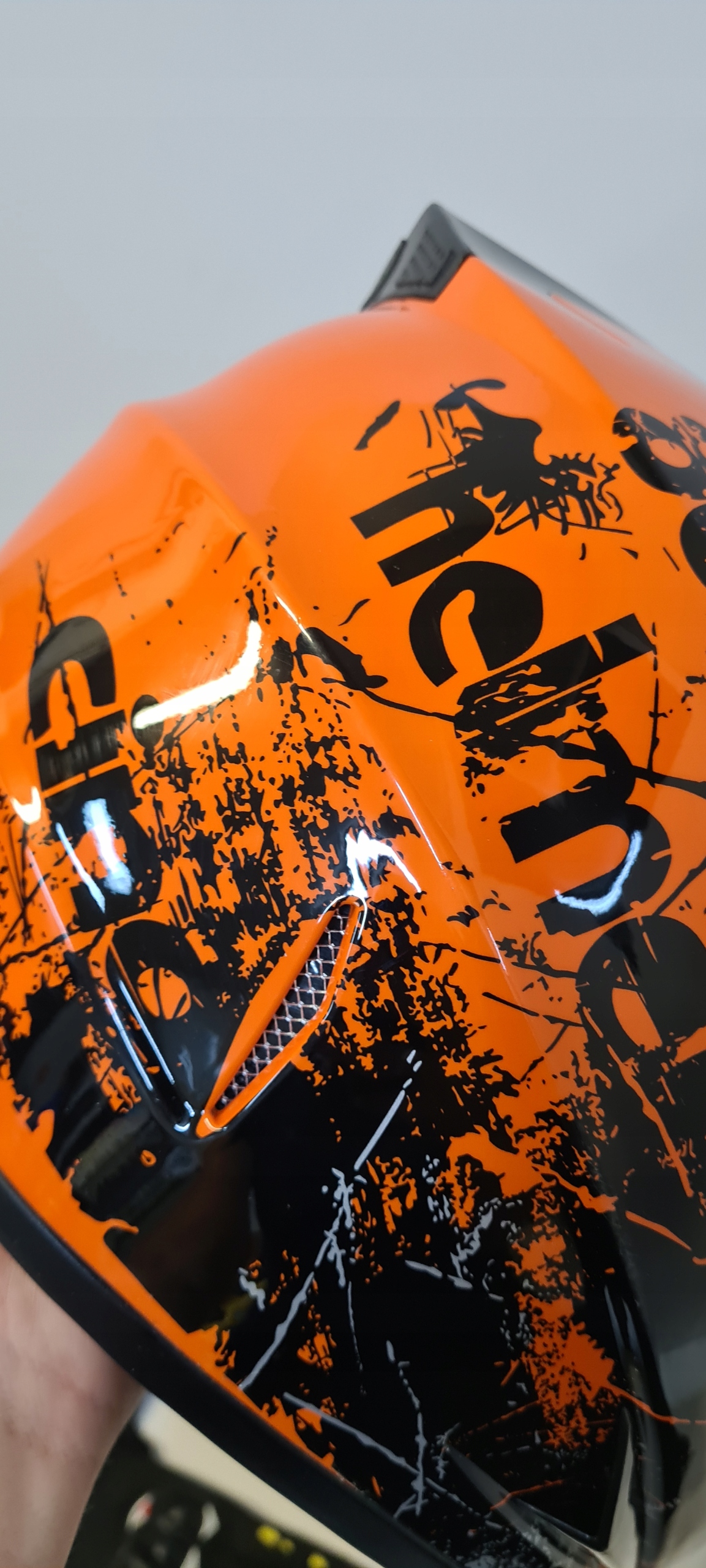Młodzieżowy kask motocyklowy ZIRA szczękowy rozmiar L pomarańczowy czarny
